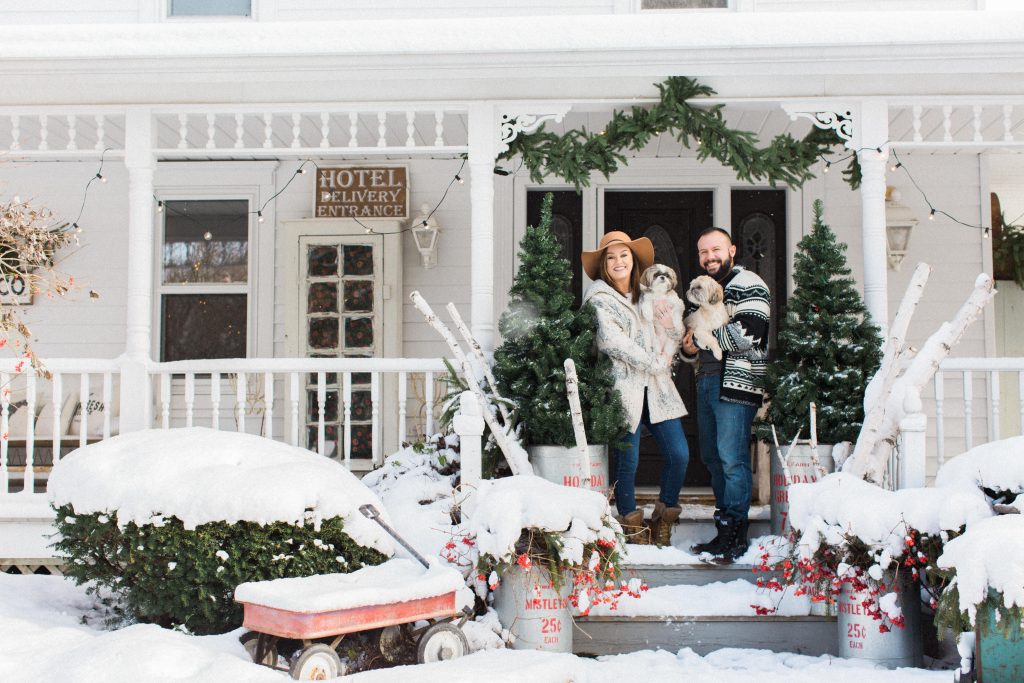 You guys already know that moving to our little farm 7 months ago was a dream come true for us. We have loved every moment of being here through the ups and downs we have already had. Well, I have to confess that Christmas here at White Cottage Farm has made me fall in love with this place even more. The lovely Tifani from Tifani Lyn Photography came to the farm last week to capture Christmas here at the farm with Jose & I & I wanted to share the photos that she took for us that I will treasure forever. Our first Christmas here has been magical and even 7 months later, this still doesn’t feel like real life. Today I’m sharing part one of the photos that took Tifani took, & I will share more later this week with some deep thoughts that I hope to share with you about our fertility & the holidays. There were over 100 photos that she took so I figured I should break them up a little & not share all of them because you guys don’t like our faces that much I don’t think…