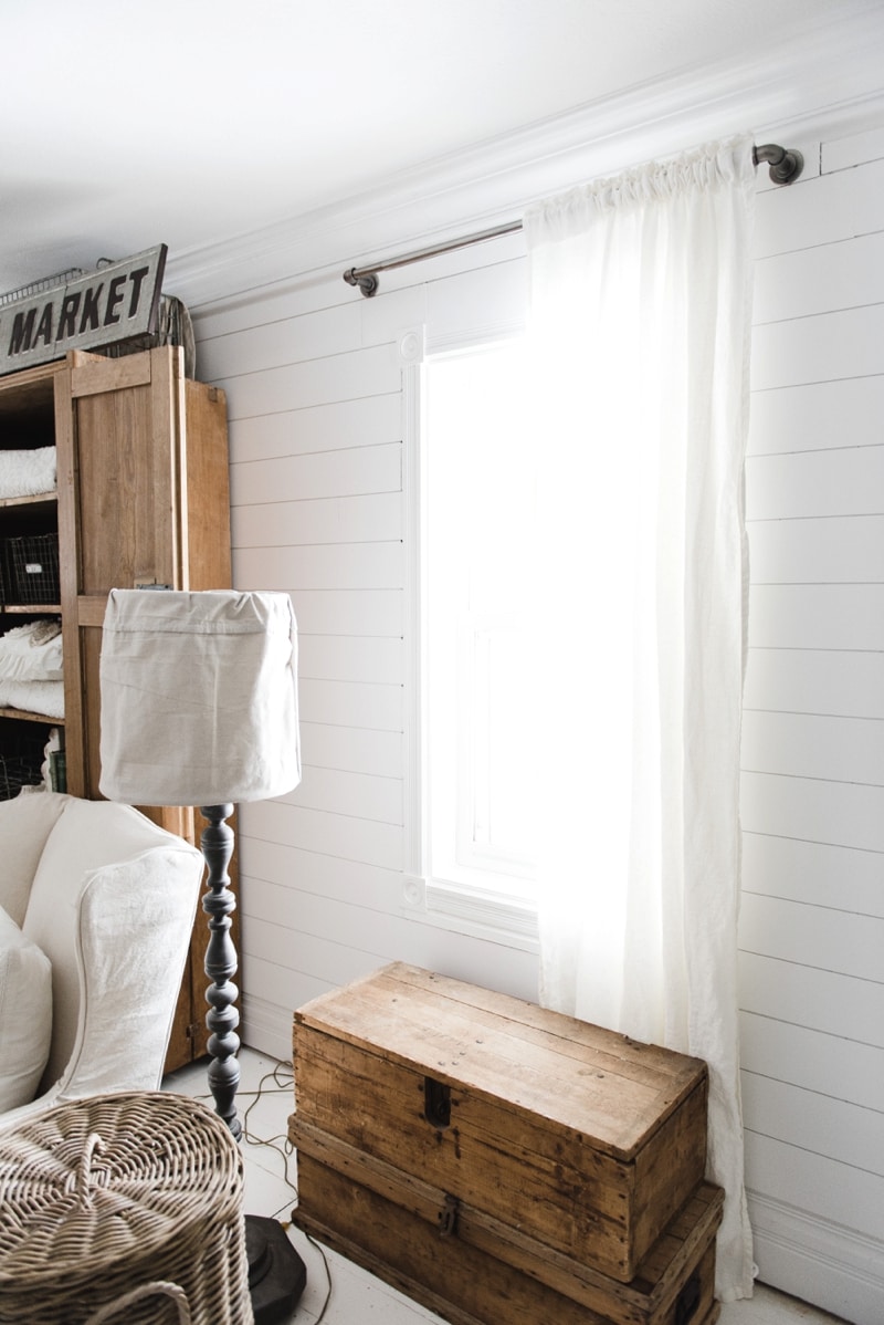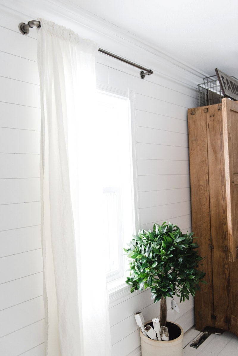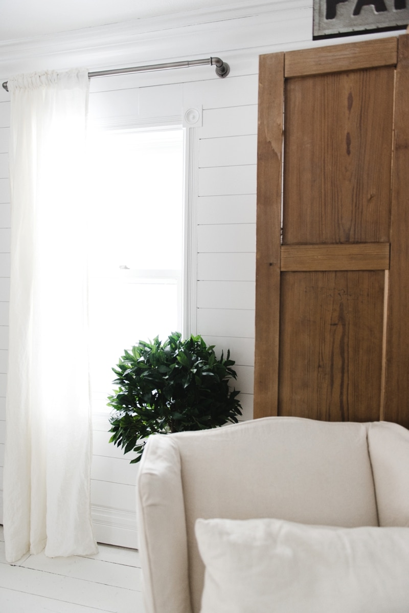 We hung these curtain rods & curtains in our front living room on the two small windows in the space. [Side note: we are hoping to add more windows in this space soon]. That’s not a DIY industrial pipe curtain rod.. nope that is one for less than $30 from Target [HERE] that was super easy to hang & use, & required no assembly by me. The other pros? If you don’t know, the pipe pieces that you find at the hardware store is quite expensive & quite dirty. The ones I found at Target were cheaper & clean… in the midst of the chaos of a fixer upper, an easy fix like this is much welcomed. I’m ALL ABOUT a good DIY project, but I’m also all about saving some money & the easy way out at times.