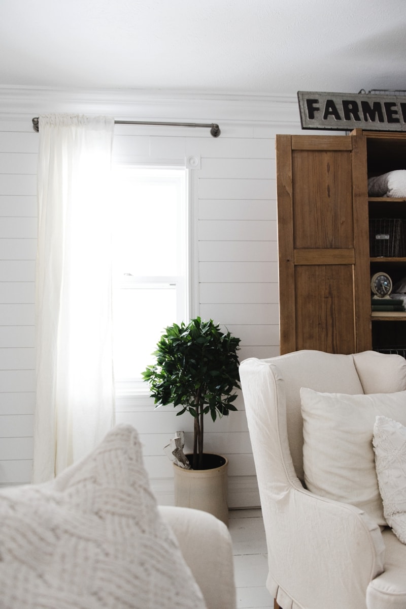 So beautiful!! Can you please tell me where your curtains are from and what is the beautiful green tree in the crock? Thank you so much for sharing your talents!!