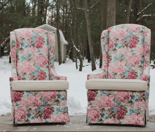 The chair makeover is just beautiful I also have two wingback chairs with the same identical rose print. Where did you buy the drop cloths at how many packages per chair was required ?