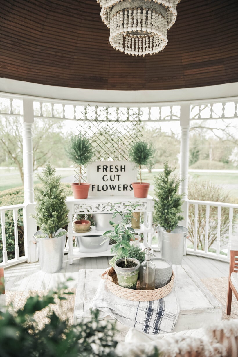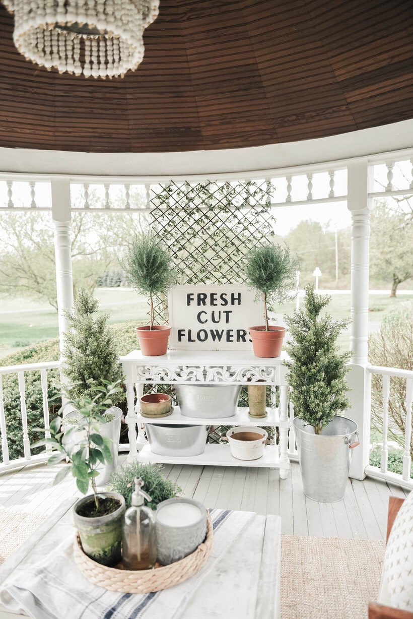 2. […] you missed it, we blogged how we gave this gazebo a little makeover [HERE] last week. Jose built this table so that we could have storage for our outdoor items like pillows […]
