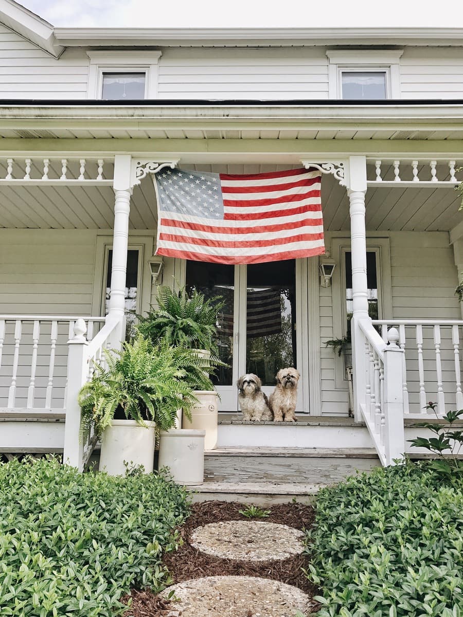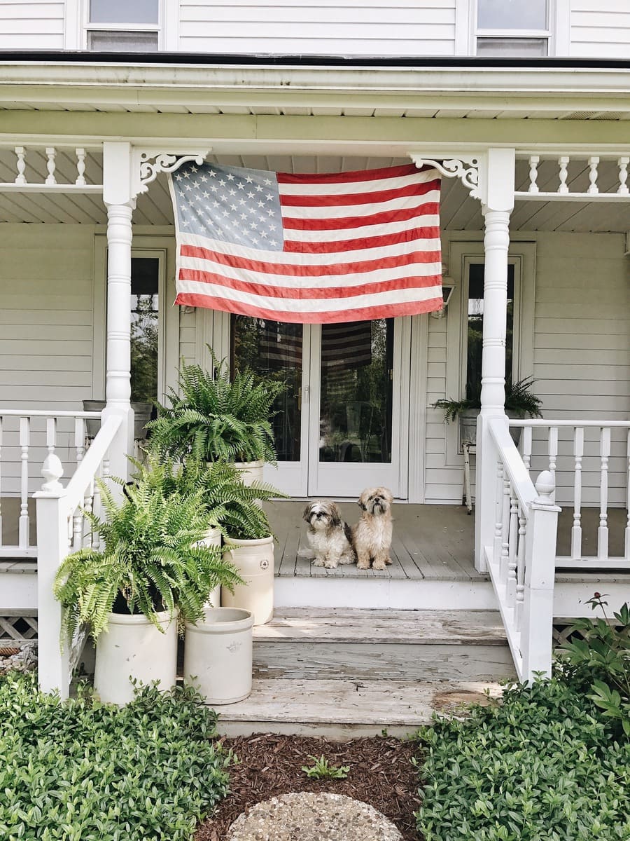 Jose will be doing a whole post over on our farm blog soon talking about proper flag flying & how to retire old flags. It truly fascinates me all he knows about the American flag & how to care for it. But for now, I hung this antique flag of mine on our porch & of course our dogs got in on the patriotic action. I guess all I’m saying is that there is no way I can show how much gratitude that I have for all those men and women who defended us to the death, but I can show my gratitude in little ways daily, & I’m forever grateful. Thank you so much to the men and women who gave it all & to the families of those fallen military personnel. Thank you. xx