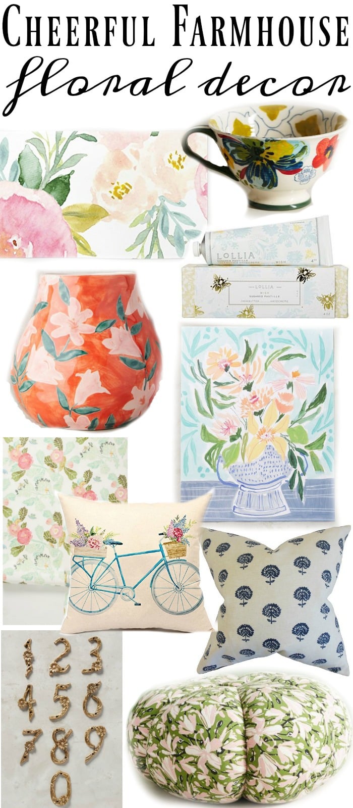Do you ever have one of those weeks where you feel kind of uninspired? I was having one this week. Nothing bad happened, but I just couldn’t get in my creative groove as usual. So I wanted to share some things that help me get out of that rut today. Ya’ll know that my style is far from bright and floral-y. It doesn’t mean that I don’t love it & that I don’t appreciate the beauty of bright & floral decor. Since I was feeling uninspired I always find what helps me is to “play”. So today I played around my house in the little free time I had decorating & playing with some decor that I had lying around the house. Another thing that helps me is looking at decor online that I wouldn’t necessarily buy for my own home, but that I would buy for a client. So today I went to the most cheerful uplifting thing I could think of… florals. It actually got me thinking of a girl nursery we might be lucky enough to have some day, or a sunroom in the south, & actually a few of these elements in small doses would actually work great for our farmhouse like those gold floral house numbers. The rugs shown above were the most impressive thing to me & that lotion I included is my new favorite lotion I have! Anyways, this always works for me so I wanted to share it with you guys. Step out of your element, rest, & take time to play with no pressure to gather yourself & get your inspiration groove back. I hope you guys liked seeing this happy floral decor today & that hopefully it inspires someone who sees it today. Thank you guys so much for stopping by the blog today & for always inspiring me daily! Be sure to find me on Facebook & Instagram to see more of my daily inspiration. xx