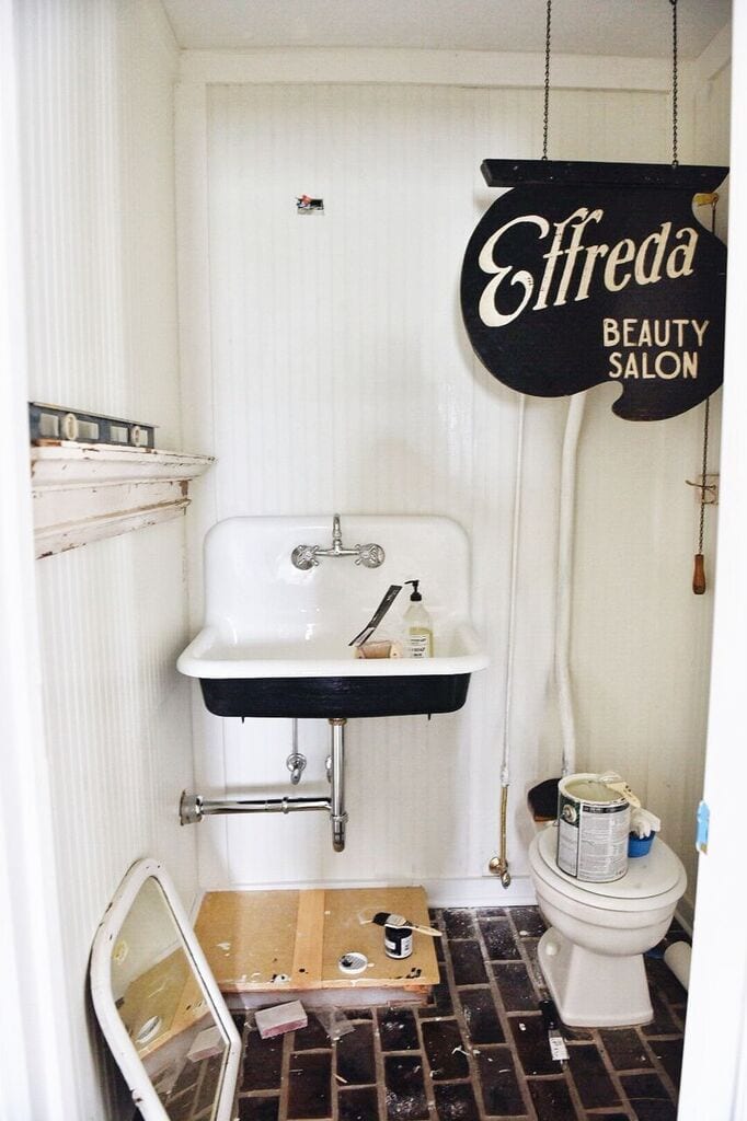 The bathroom is looking adorable! What a great idea with the sign. So I’m thinking black and white diamonds painted on the floor…. I have always wanted to do that somewhere.