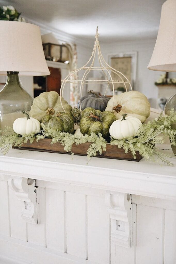 I’m hosting my first chalk-paint workshop in October and I’m planning to use a wood crate as the project piece and display it with white, green and turquoise pumpkins as an example.