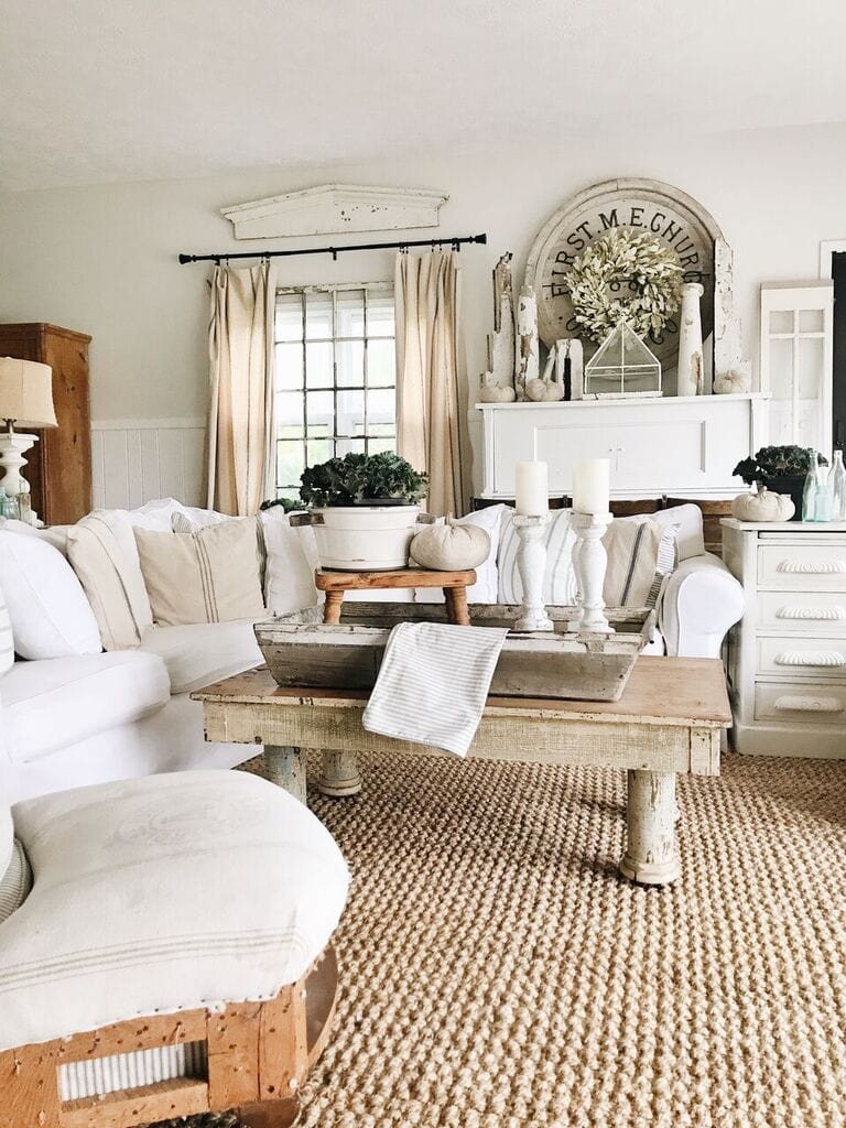 Architectural pieces! I found so many little chippy white architectural pieces like these I displayed on the piano. I have an obsession with all things chippy & white… y’all know me so well! Oh & that wreath as well!