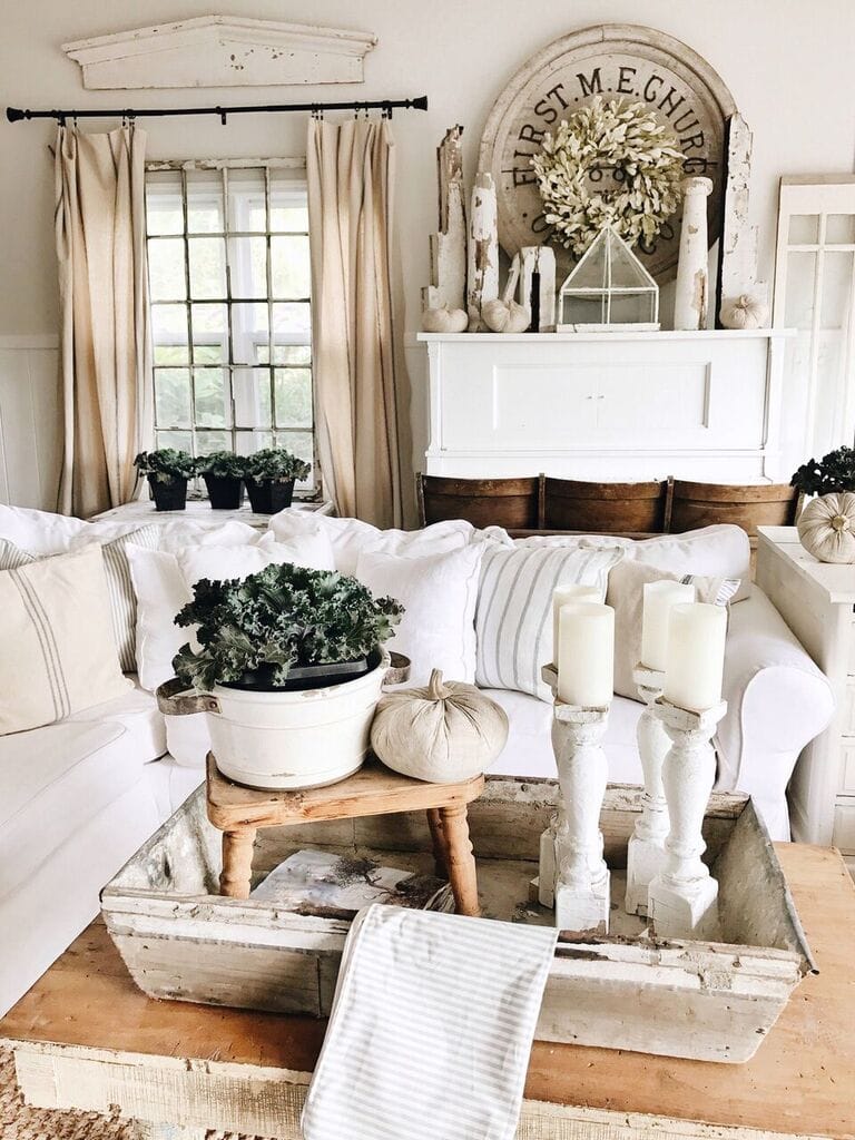 Kale. So much kale. We had an amazing local greenhouse [Robin’s greenhouse] at the market with tons of fall florals & I had to grab some before the show ended. I went with tons of ornamental kale & I just love using it in our fall decor. I kind of spread it around the living room for now, but I will most likely be using it in our fall porch decor.