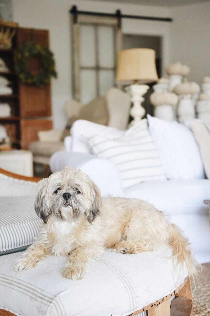 i always look forward to your posts and pics…everything is always perfect and never get tired of your style, way you arrange things together,,,very well done!! and your grace and little dogs are so sweet!! i have been wanting to make some fabric pumpkins or paint some,,my 4 yr old grandson loves to craft and is so ready to paint pumpkins. when we are at craft booths he loves to pick out things he loves too,,,,i am wanting to paint brown candlesticks white so i can use with candles but also put the mini pumpkins on them. i have 3 but will probably buy more…i started out yrs ago cutesy country, then primitive, now farmhouse rustic..well i guess i still have some primitive but blending things,,and a lot i have got rid of for the new look,,,,