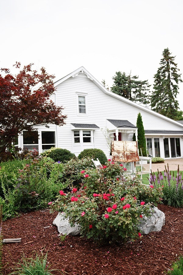 Just kidding. It’s not a secret. But it is quite big!!! It’s just it hasn’t been a pretty process so I haven’t shared it with you guys. You see, when we moved in we knew the landscaping here on the farm had to go. It was pretty, don’t get me wrong, but it was a lot. It was basically more than an acre all added together of plants on plants on trees on plants. Basically to keep up with it it would have taken a few hours a day of weeding & maintaining & that just wasn’t in our life plans right now. It all started with taking 10 dead pine trees down on the property to taking out all of our landscaping. Quite the jump, but quite frankly it needed to happen. It’s been such a long process [we started the end of August] & finally this week a fellow local farm, Wild Wood Family Farms, has come out to finish the job for us. This week they ripped out the rest of the foliage and trees around the house & brought in new dirt to get ready for planting & laying grass seed. Here is a glimpse of the before…