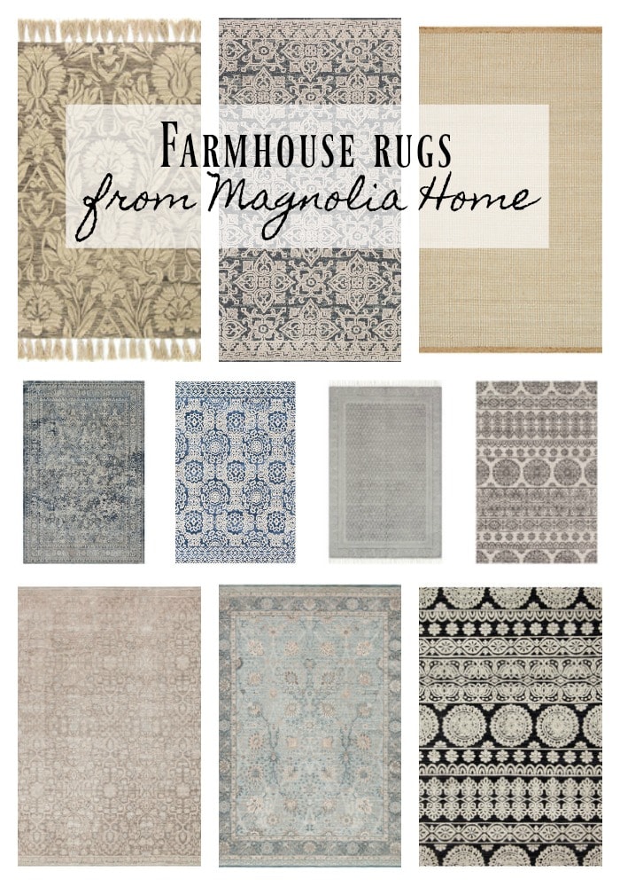 So, this is the rug in our bedroom from Magnolia Home. It’s the Lotus “fog & beige” rug & I’m a little obsessed with it. I had never considered a Magnolia Home rug before, but the truth of it all is when I heard that Better Homes & Gardens wanted to do a photoshoot in our bedroom I freaked out a little big & ran to a local furniture retailer close to me & they had Magnolia Home rugs in stock & I when I saw this one I had to have it. I loved the contrast it was going to add to our natural bedroom & also that it was going to cover the existing carpet that we have yet to rip out of this space. I think the one thing I would say about this rug is that there is more “teal” running through this rug than shows in the photo,but other than that there were really no surprises & I don’t regret our purchase at all. My first Magnolia Home rug experience has been a good one so I thought I would share it with you guys & also some of my other favorites from the line [click the photos below to shop the rugs with affiliate links]
