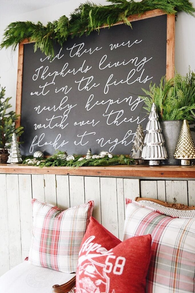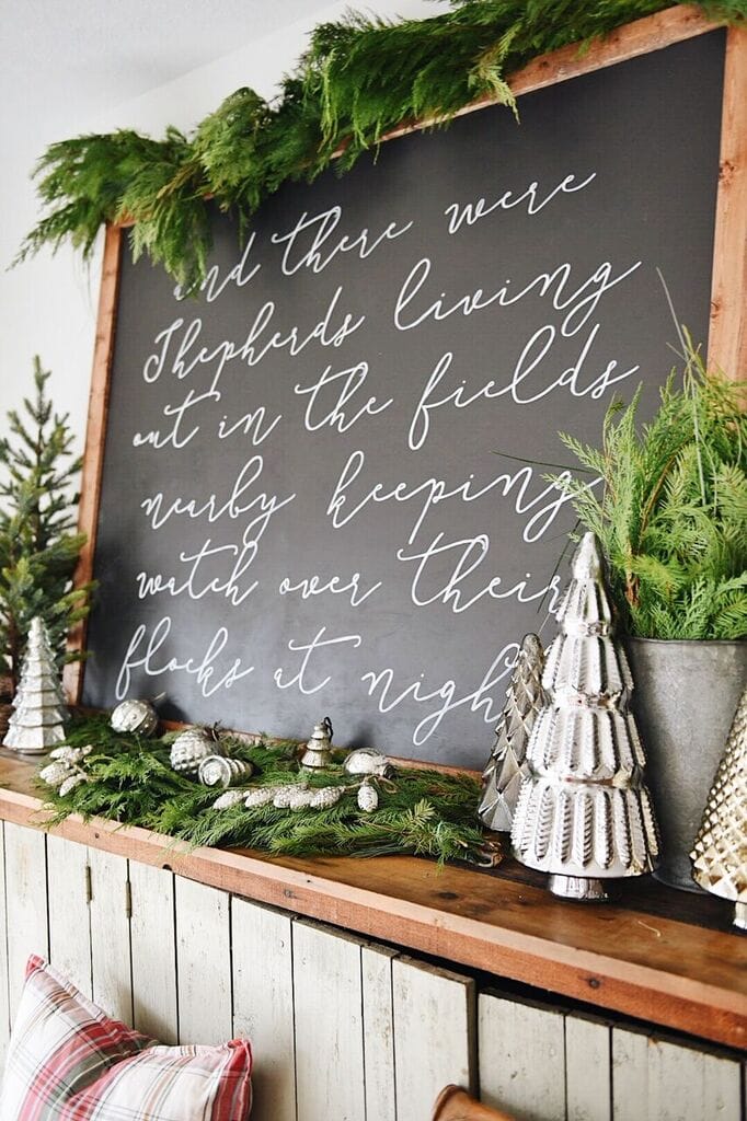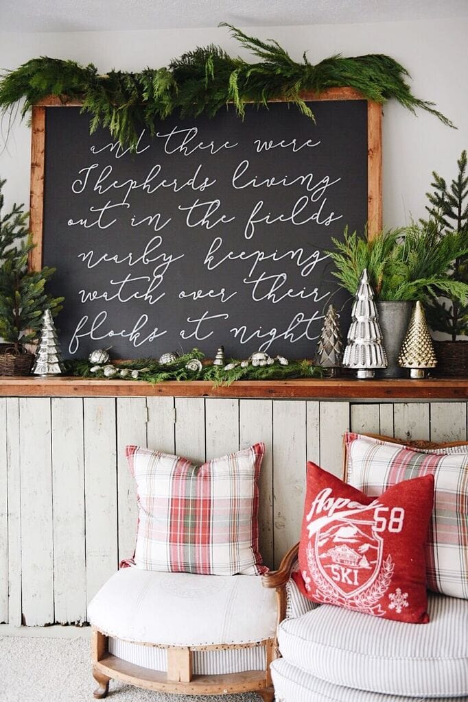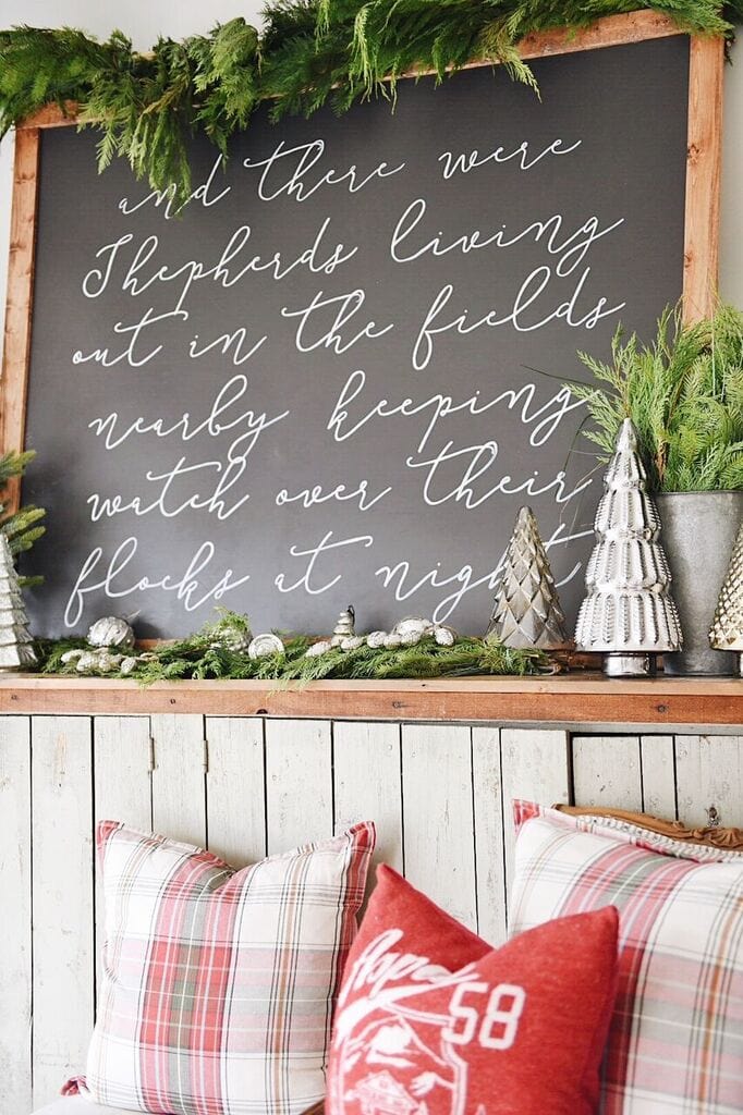 I just love your new Christmas verse sign! So personable, and lovely. And the way you have accessorized with the fresh greens is perfect!