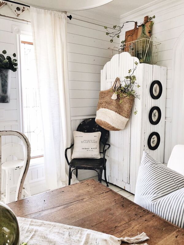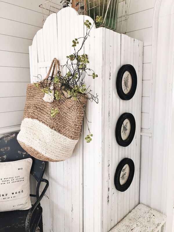 These two are baskets from Joss & Main & then one from my shop that I hung on the cabinet doors in our dining room. They add a little pop of texture to the white cabinets & of course a pop of the outdoors with those branches.