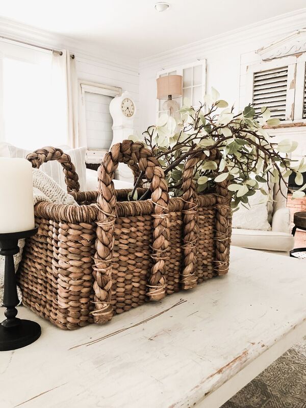 The other day I was doing some instagram stories & realized something… I have been throwing florals & greenery in baskets all over our house for decor over the past year & I’m not sure any of us noticed how much I was doing it… NOT EVEN ME!! It’s like an obsession you guys!! So today I wanted to take a few minutes to share with you guys some different ways I have been doing some DIY greenery basket decor around our home to hopefully inspire you to do it in your homes as well….