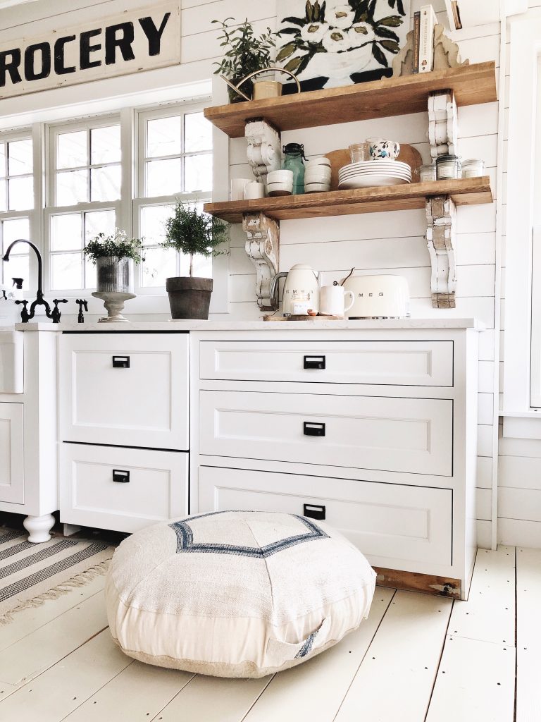 Click [HERE] to see more of the kitchen shelves & get sources.