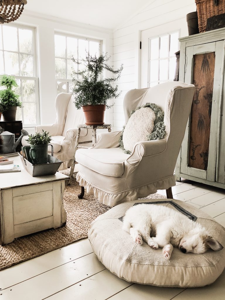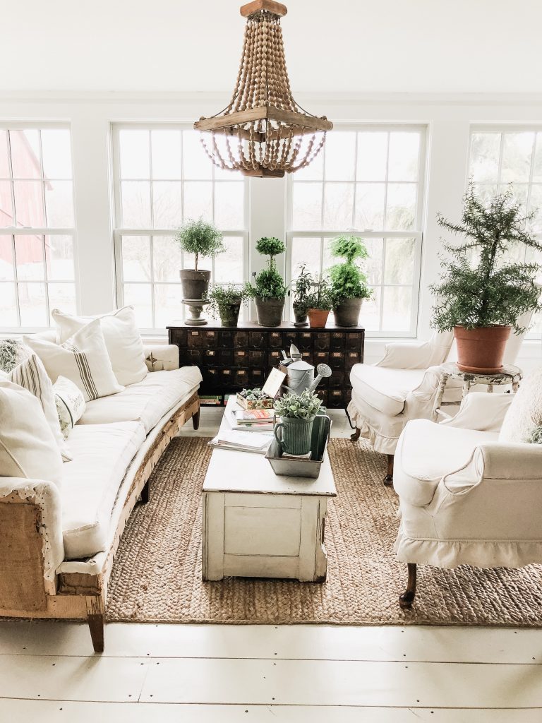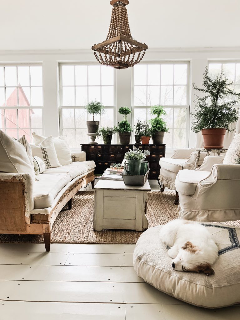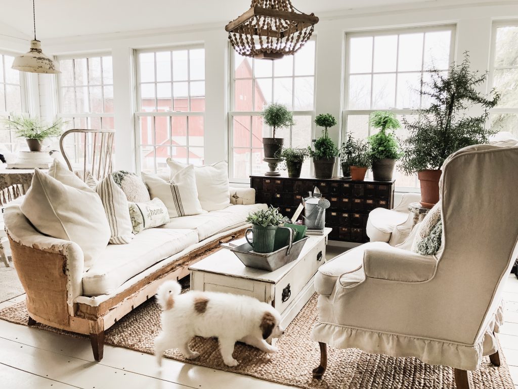 This Easter Sunday was full of moments that had me changing my perspective. From the moment where we came home from Easter lunch to find Winnie covered in poo in her cage to the people we had Easter dinner with to the way we switched around our sunroom. You may be thinking these have nothing to do with each other… but they do, trust me. When I was cleaning Winnie up from her poo accident… I looked out the window above the kitchen sink & I saw the farm covered in sunshine & realized how lucky I was to care for all of these animals & to have that joy in my life… perspective. Before the poo incident, at lunch today, we weren’t surrounded by our family, but by very special people in our life that we call our friends. I was thinking before the lunch that it didn’t feel like Easter because we weren’t having lunch with family. But in the middle of lunch today as we were all laughing & I felt so comfortable and “at home” I realized that it was so special to be surrounded by people that I loved on Easter & it was exactly where I needed to be. Then there was the sunroom after the dinner with special friends, & the poo incident… I had a cup of coffee & had a wild idea to try a different layout in the sunroom…