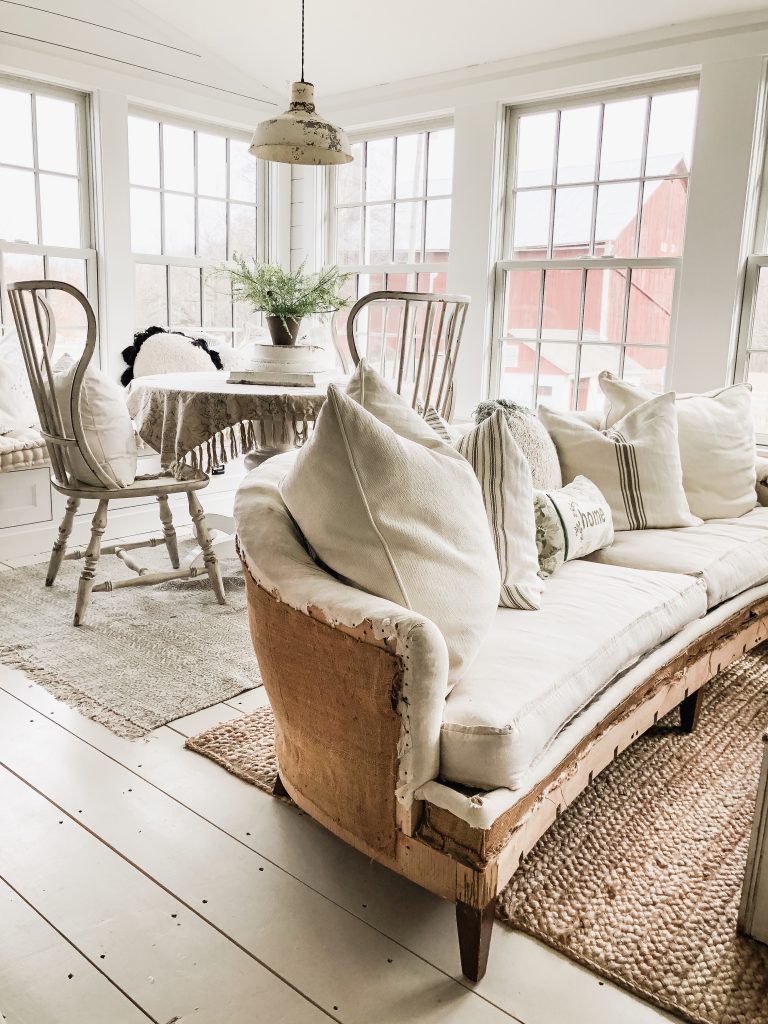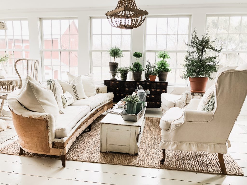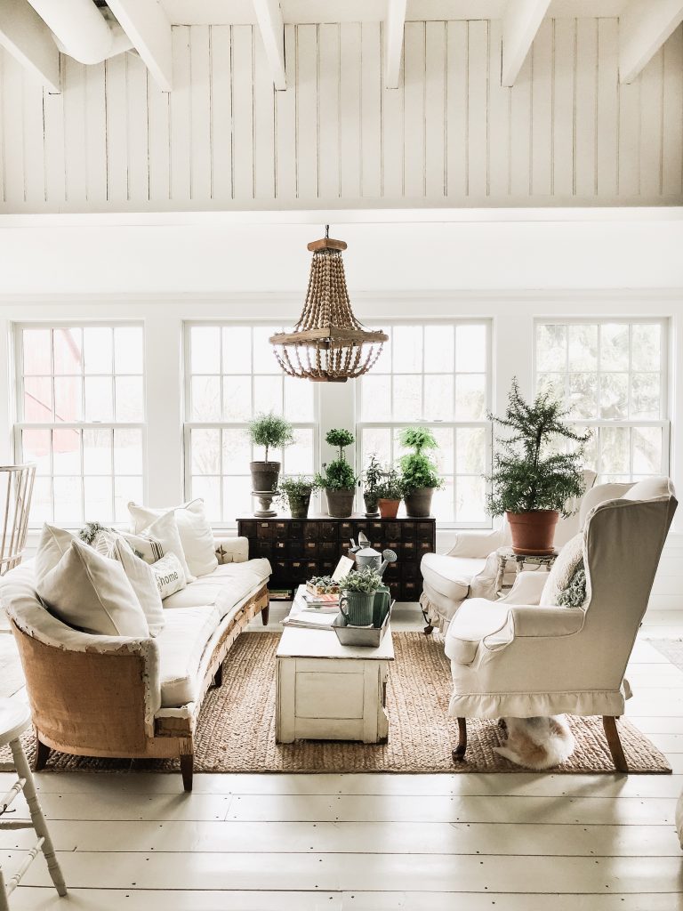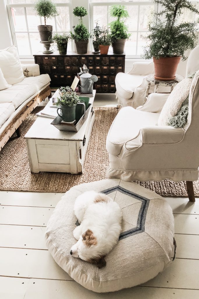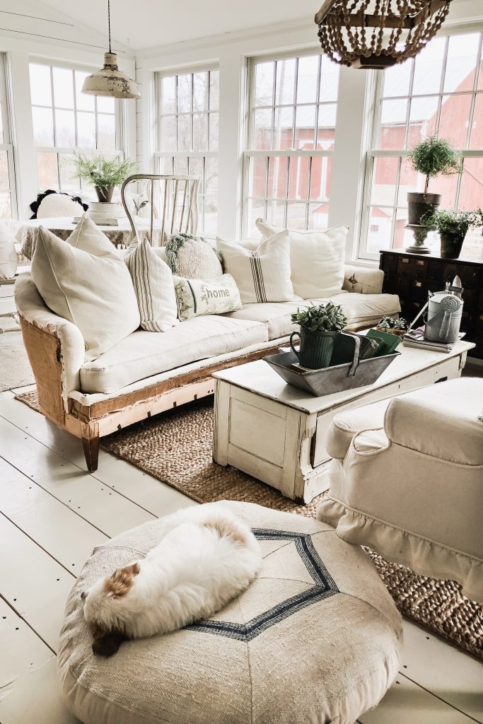 This Easter Sunday was full of moments that had me changing my perspective. From the moment where we came home from Easter lunch to find Winnie covered in poo in her cage to the people we had Easter dinner with to the way we switched around our sunroom. You may be thinking these have nothing to do with each other… but they do, trust me. When I was cleaning Winnie up from her poo accident… I looked out the window above the kitchen sink & I saw the farm covered in sunshine & realized how lucky I was to care for all of these animals & to have that joy in my life… perspective. Before the poo incident, at lunch today, we weren’t surrounded by our family, but by very special people in our life that we call our friends. I was thinking before the lunch that it didn’t feel like Easter because we weren’t having lunch with family. But in the middle of lunch today as we were all laughing & I felt so comfortable and “at home” I realized that it was so special to be surrounded by people that I loved on Easter & it was exactly where I needed to be. Then there was the sunroom after the dinner with special friends, & the poo incident… I had a cup of coffee & had a wild idea to try a different layout in the sunroom…