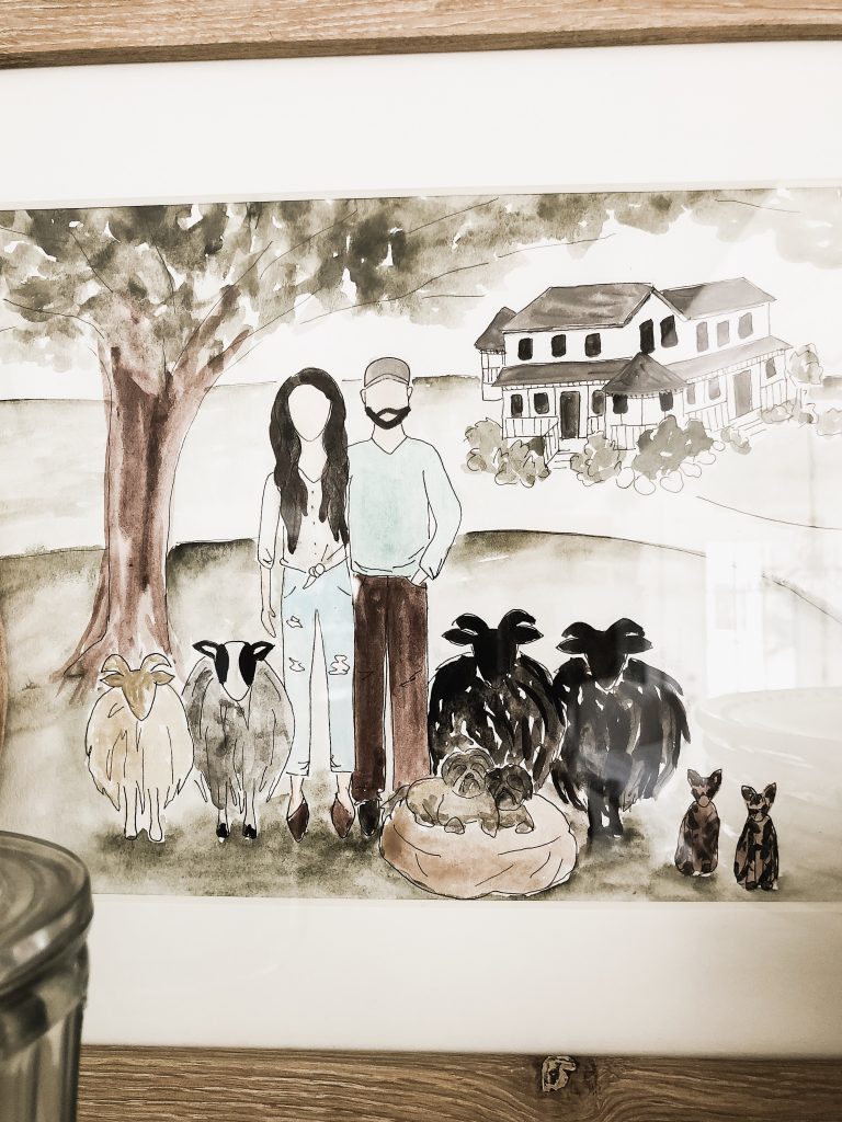 A few weeks ago, on my birthday, a very special girl in my life dropped off an amazing gift that I will treasure forever & ever. Amen. Her name is Joy & she is our shop manager. If you don’t know, we own a shop called The Found Cottage here in Michigan & it’s been a dream come true, but with dreams come a lot of hard work & some of that work… well, quite frankly, we don’t have time for. That is where Joy comes in along with the rest of our amazing staff. Joy wrangles everyone together, she keeps me in line [the hardest job ever], & is a true sidekick that I am so grateful for [along with my other other two partners…. Hi Lisa & Abby!]. Joy is a true joy. A light in my life. I’ve talked about it many times, but I suffer from anxiety and depression… it’s just something I’m navigating through & whenever I’m having a really hard day, I go into the shop & Joy is there to cheer me up. When I get there she always says “Do you want to go for a walk?” which involves us grabbing our coffees & walking around the shop talking about plans & things we should do that day to make it better. She’s really special.. you get the idea…. Well, on my birthday she dropped off a watercolor painting of us on the farm with our animals & I cried. I mean, tears streaming down my cheeks. & I’m not sure I even told her this, but that painting meant more than I could ever tell her. Her card & the painting were a reminder of all of the creative people in our life that lift me up daily & inspire me to keep doing what I’m doing. I stopped to wonder what I even did to deserve these people. But they are here & I appreciate the daylights out of them.