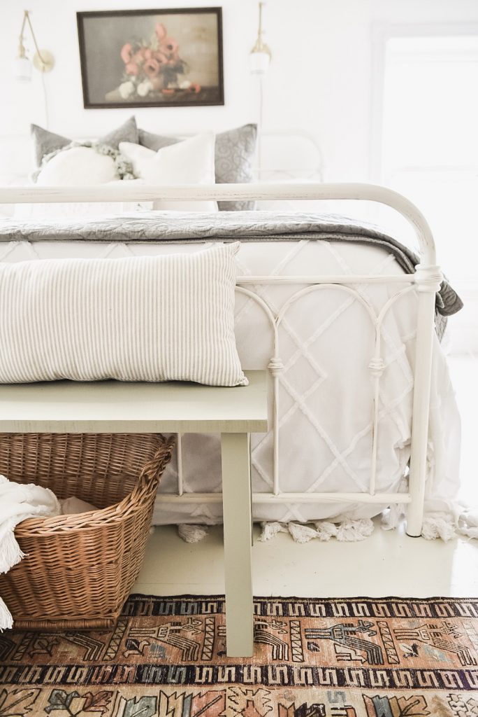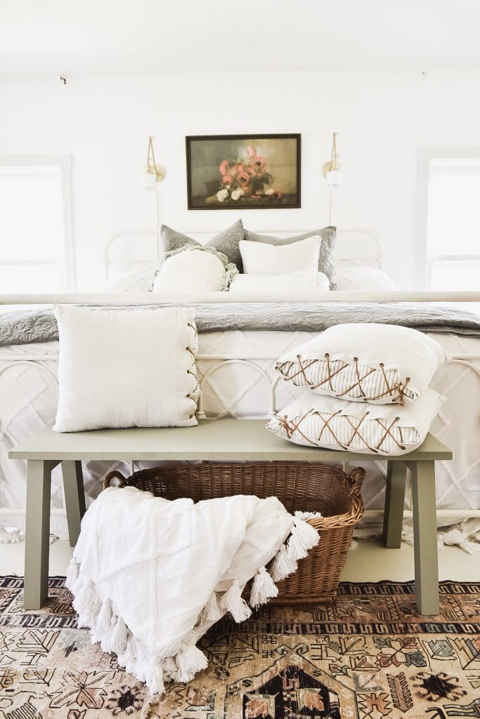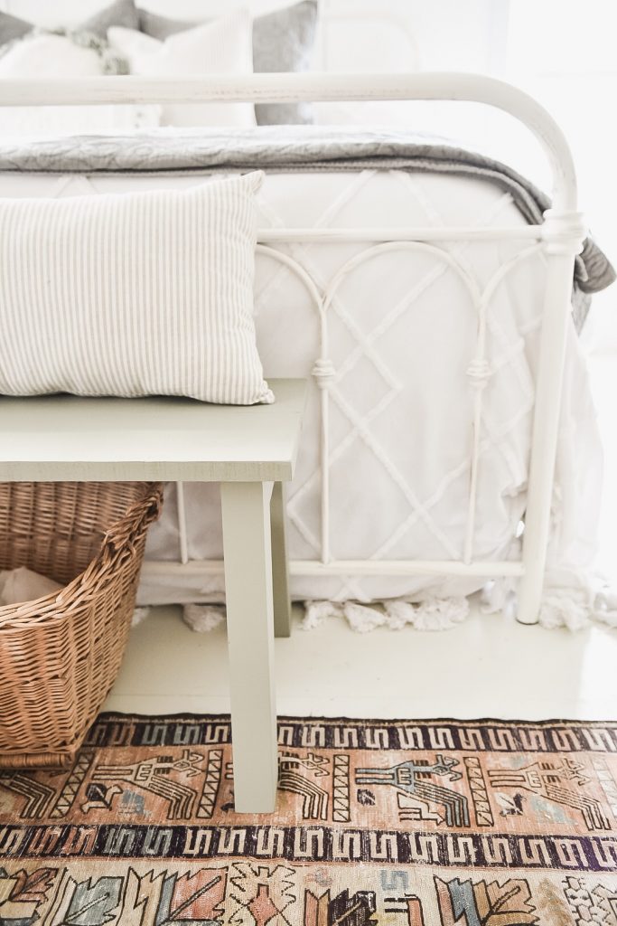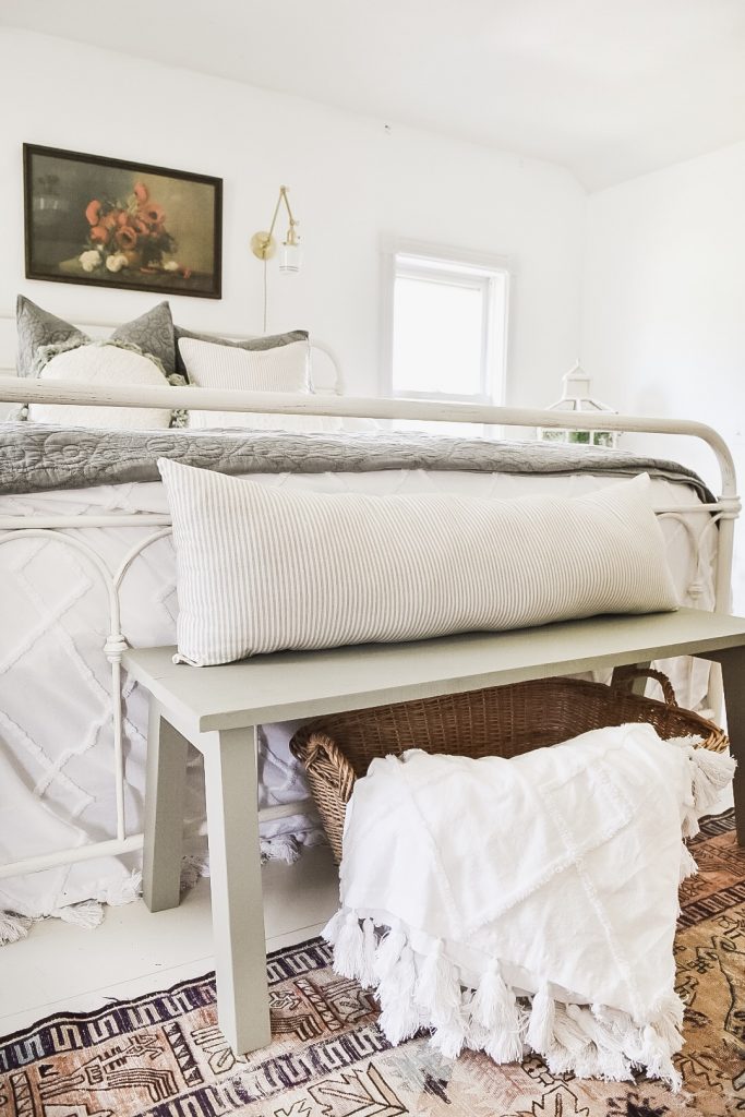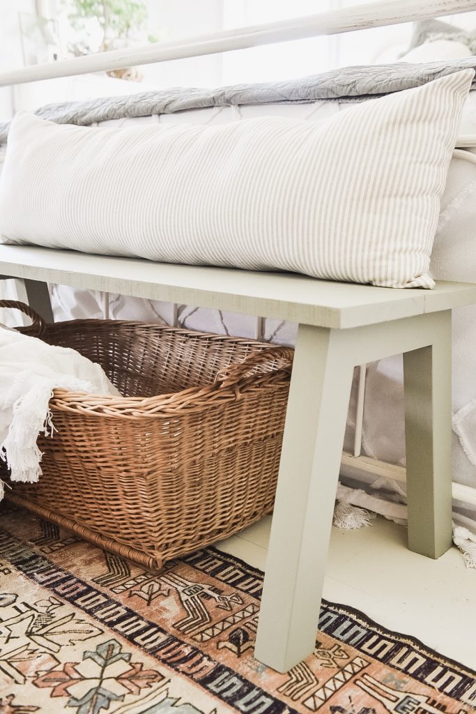 I love the bench!!! Great job and I love it at the foot of the bed. Color is perfect