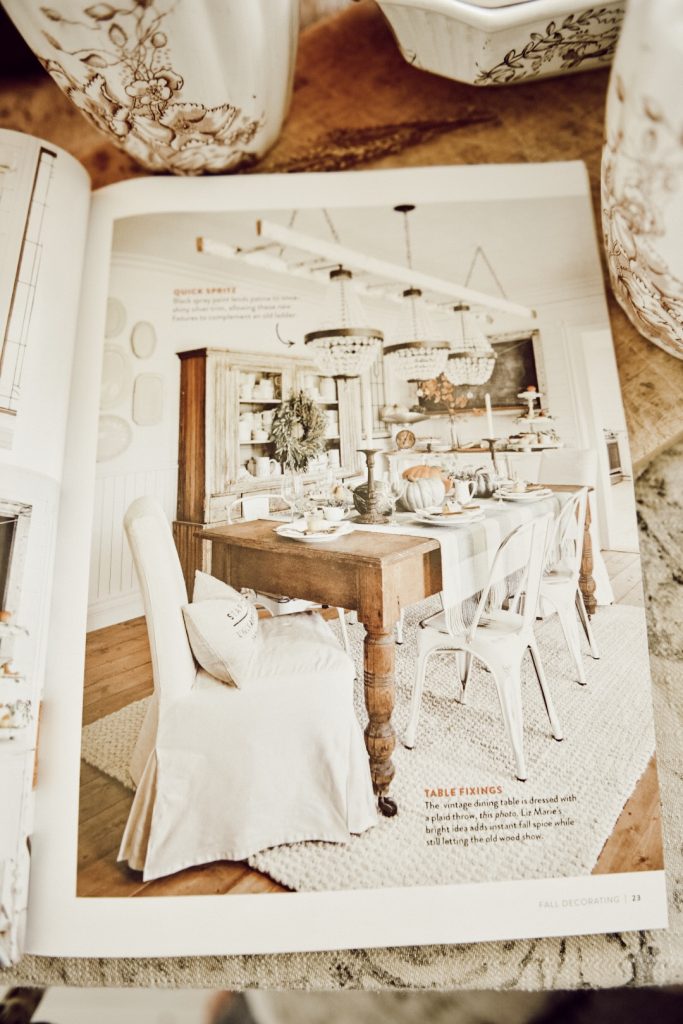 The Fall Decorating issues is our main spread, that shares a few spaces in our home… All completely looking different today, of course. Country Home, a sister to BHG, we were so honored to be the cover of. On top of that, being featured in a magazine with an blogging idol of mine and most in Home Decor and Interior design, Miss Mustard Seed. I have met and known her for sometime, and still fan girl every time we get together, but sharing an issue is just as much of an honor to me and being in the magazine all together.
