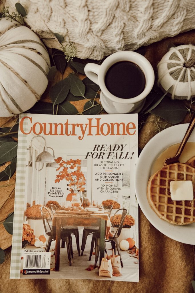 If you remember, last year we had Better Homes and Gardens at our house to do a photo shoot for next year’s fall issue. Well! Next year is here and the fall is knocking on the door. We were so surprised to find that we were not only in one magazine this year, but six. For me, these are huge milestones in my journey as an interior designer and blogger, and I am humbled beyond belief. Our two main magazines are Country Home & Better Homes and Gardens Fall Decorating magazines. We actually made the cover of Country Home this month which just blows my mind in every single way…