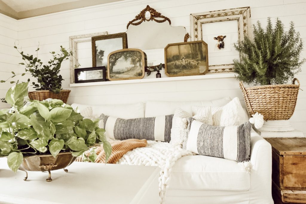 4. Wonderful artistry! I’m confident they will look lovely in your home, no matter the season. They add an antique and vintage vibe to whole space. 🙂 But I have to say, your sofa is breathtakingly cozy with all the pillows and throws. Makes me want to curl on it and not move for a few days at least. 🙂 The jungalow spark that plants bring into space is also adorable.