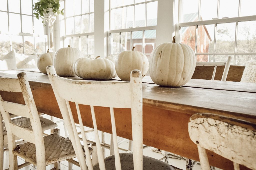 This is my favorite area of your house, the kitchen and dining spot connected…hope you do more on these two spaces to share 🙂 or a video…the table with just the pumpkins and your collection of white chairs is stunning!! I agree with you on the decorating…I love everything you decorate, but at the same time you are right in the fact that as much as we all love your style and want to try to duplicate some of it here….a good share of us just can’t buy several clumps of magnolia pear stems at 28.00 each to get that look…so we will settle with drooling over yours 🙂 and since you have soooooo many of us that follow you this was a refreshing and beautiful touch of fall…Thank you for always sharing and please wave the “liz design wand” over my house…I would like to get the light and bright look a lot quicker than its going ha ha
