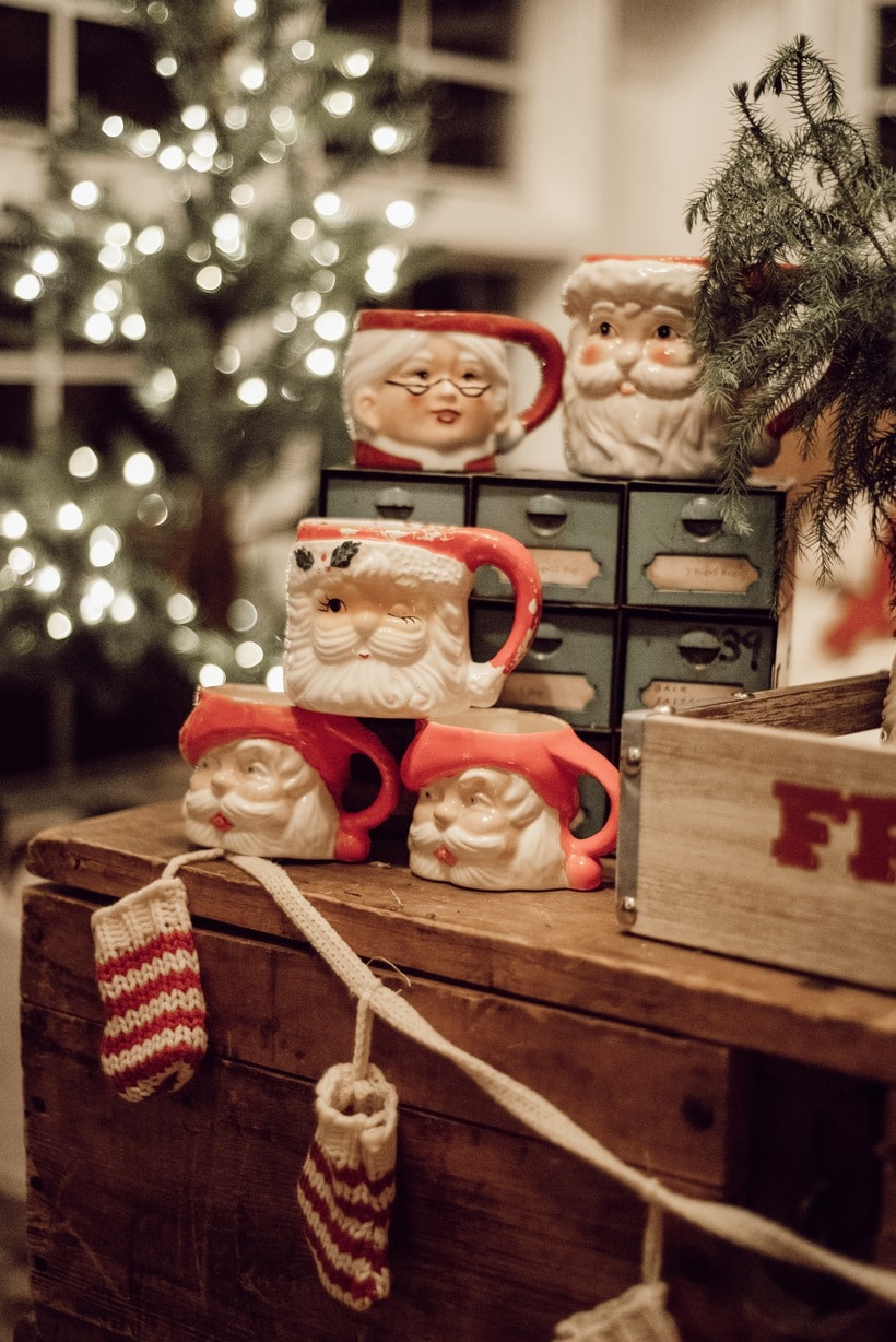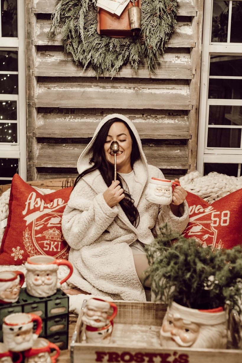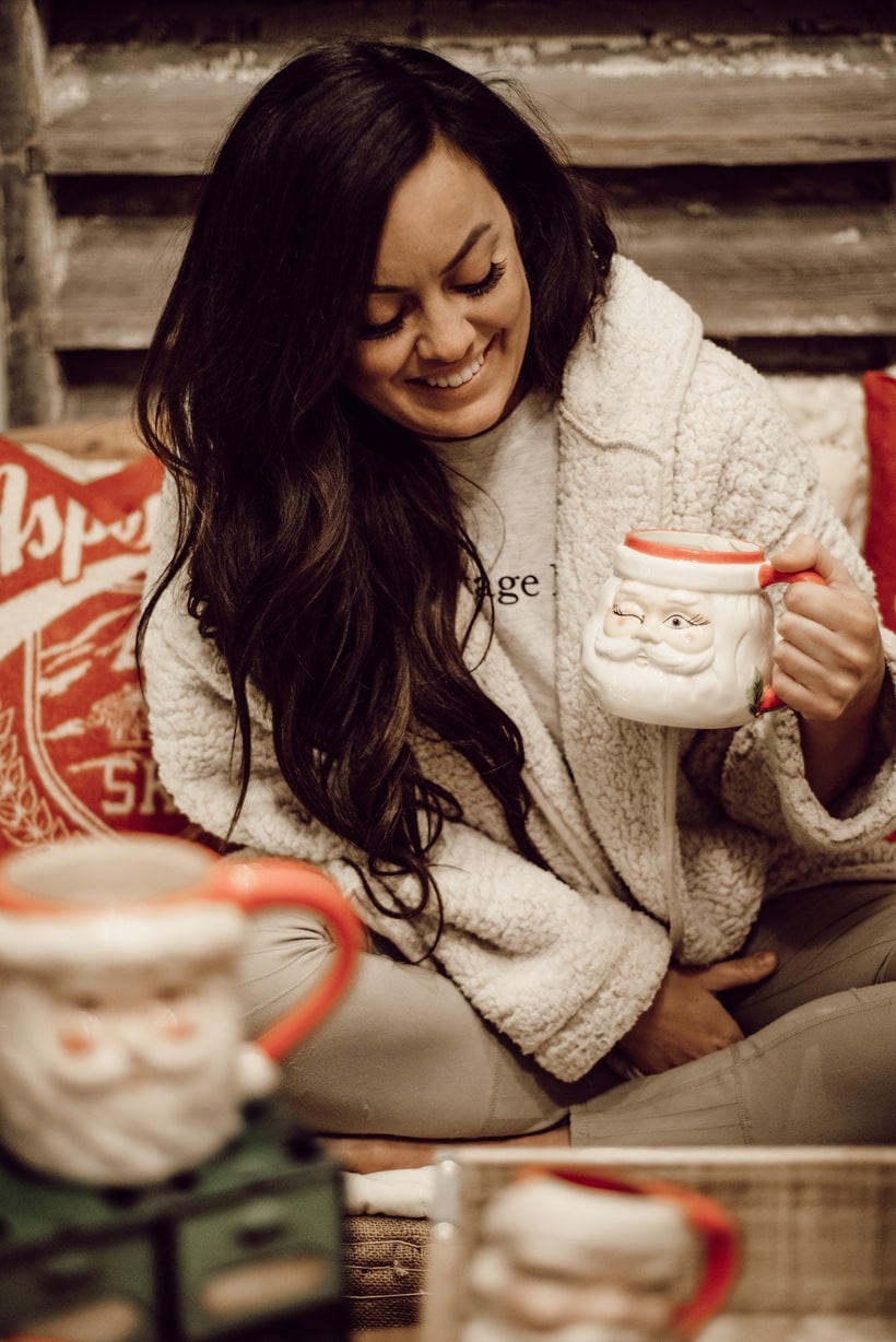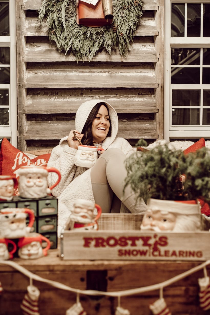 Honestly I just wanted to make this little space festive and happy so I brought in many of my santa mugs among some other festive things like that stocking garland from Michaels & that red mail box I picked up on one of my trips to Tractor Supply. Those red pillows from HomeGoods add the perfect pop of red as well. It’s nothing fancy, but it’s cozy & it’s for sure got all of the festive feels in here. When you are looking at these photos I hope you can hear what we were listening to while taking them… Lauren Daigles Christmas album. If you haven’t heard it, listen to it now!