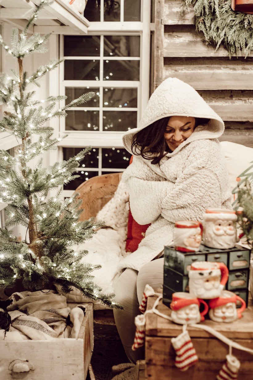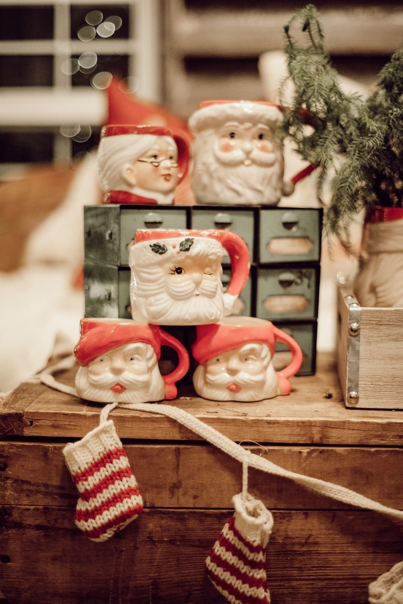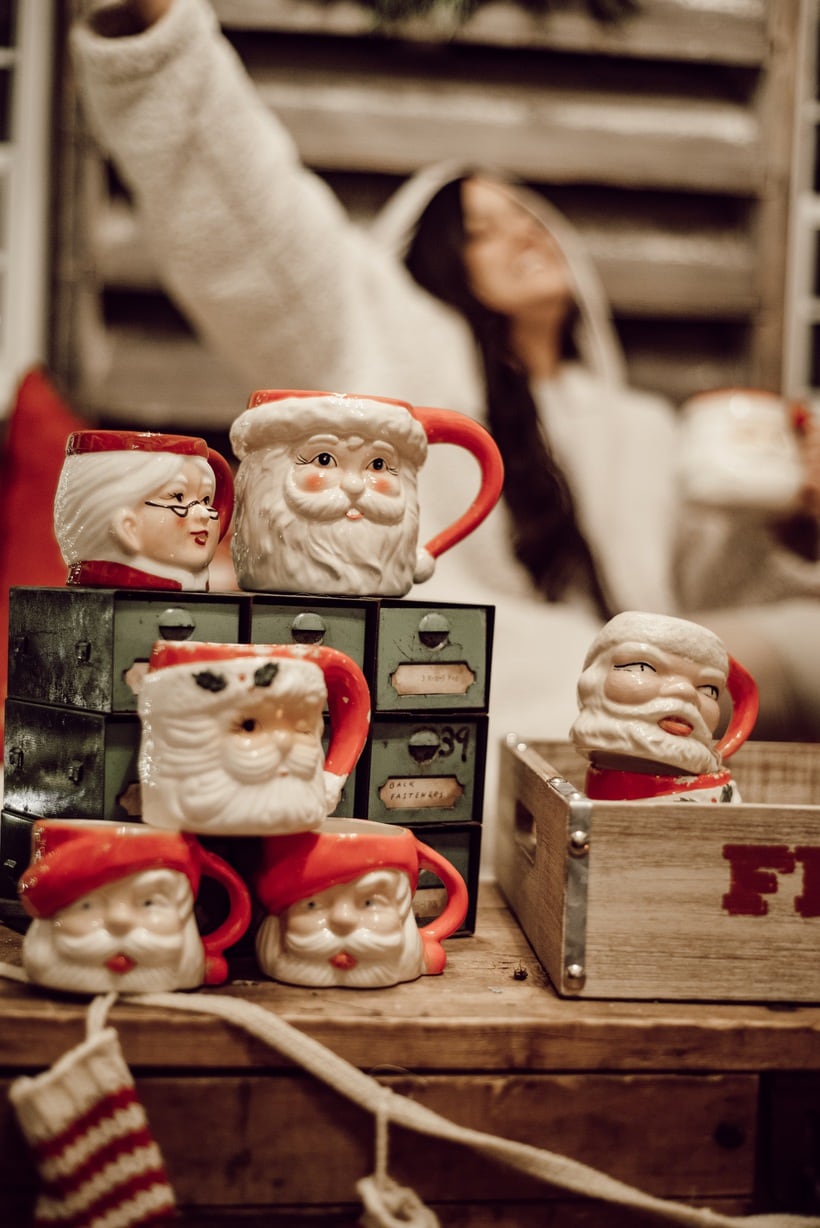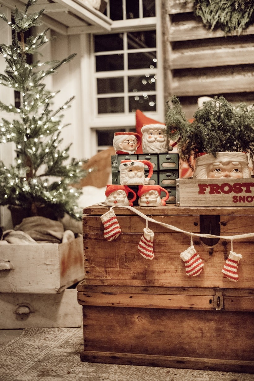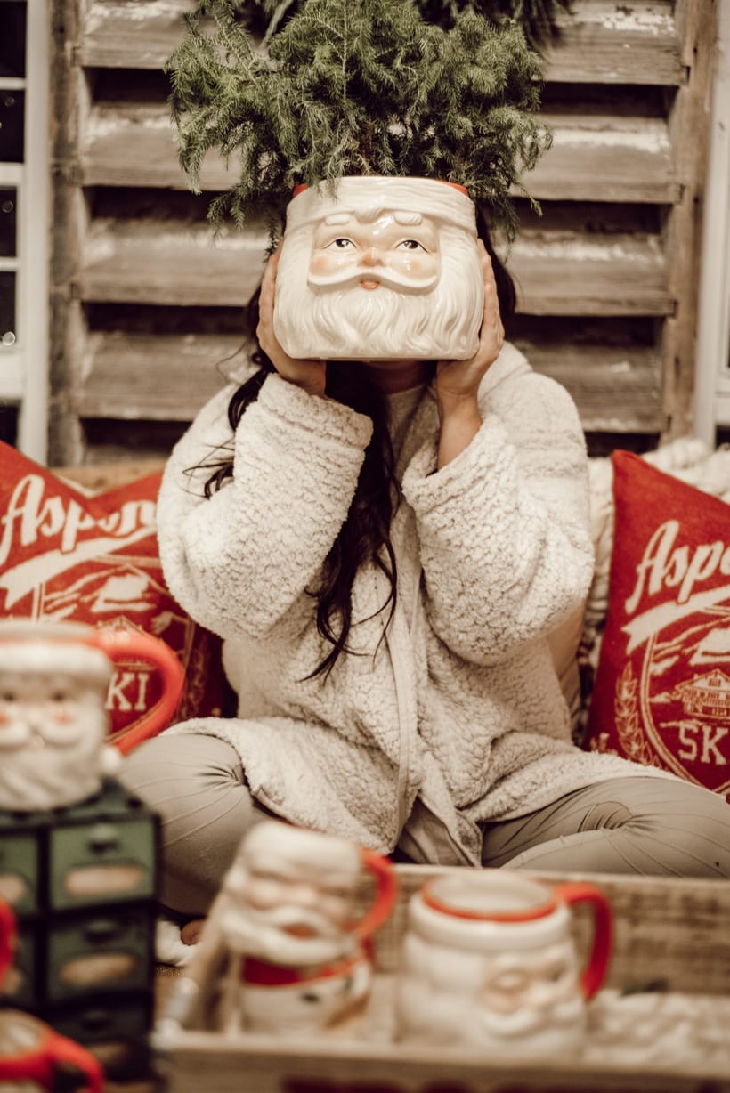 Honestly I just wanted to make this little space festive and happy so I brought in many of my santa mugs among some other festive things like that stocking garland from Michaels & that red mail box I picked up on one of my trips to Tractor Supply. Those red pillows from HomeGoods add the perfect pop of red as well. It’s nothing fancy, but it’s cozy & it’s for sure got all of the festive feels in here. When you are looking at these photos I hope you can hear what we were listening to while taking them… Lauren Daigles Christmas album. If you haven’t heard it, listen to it now!