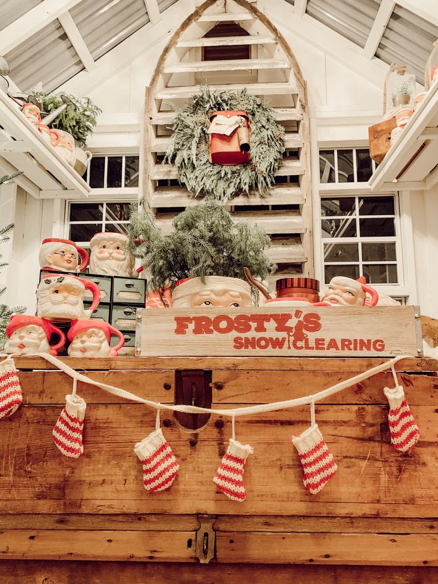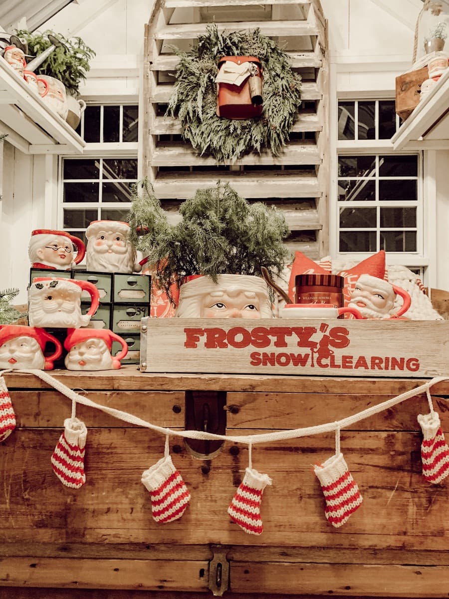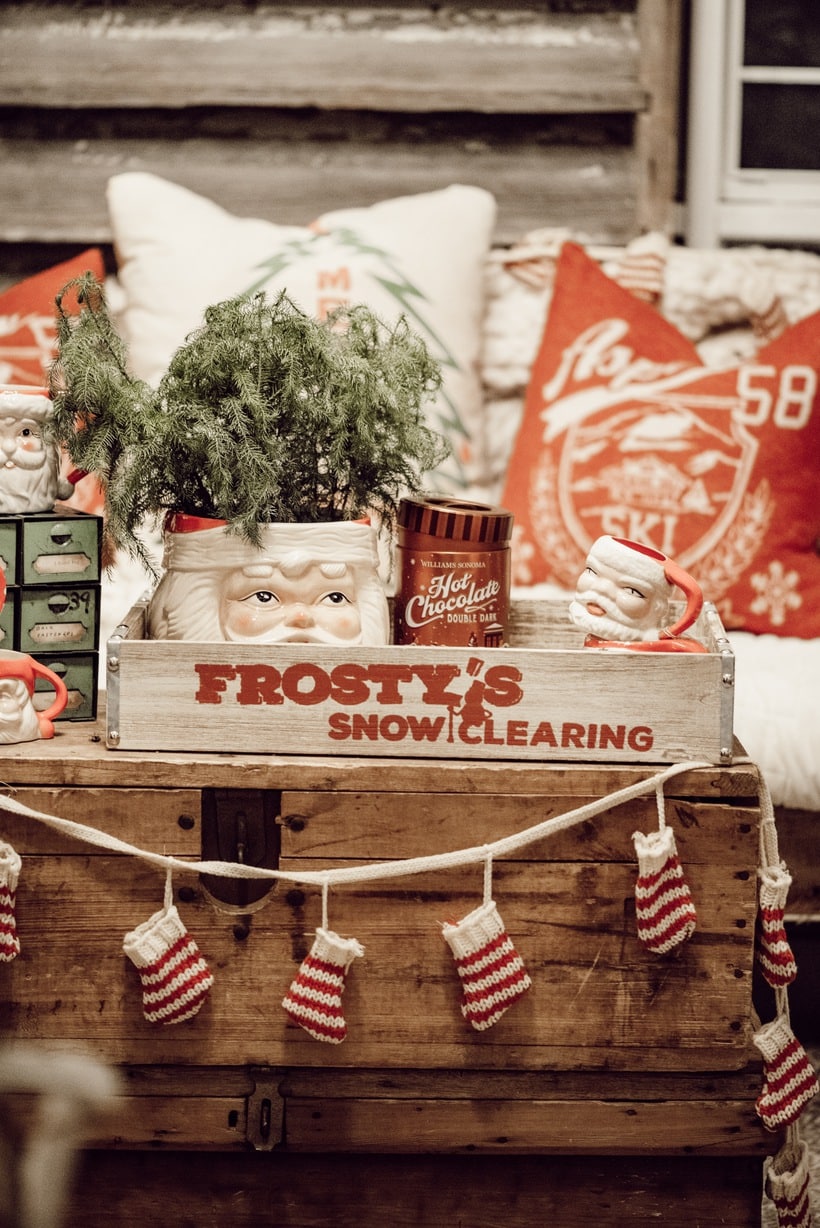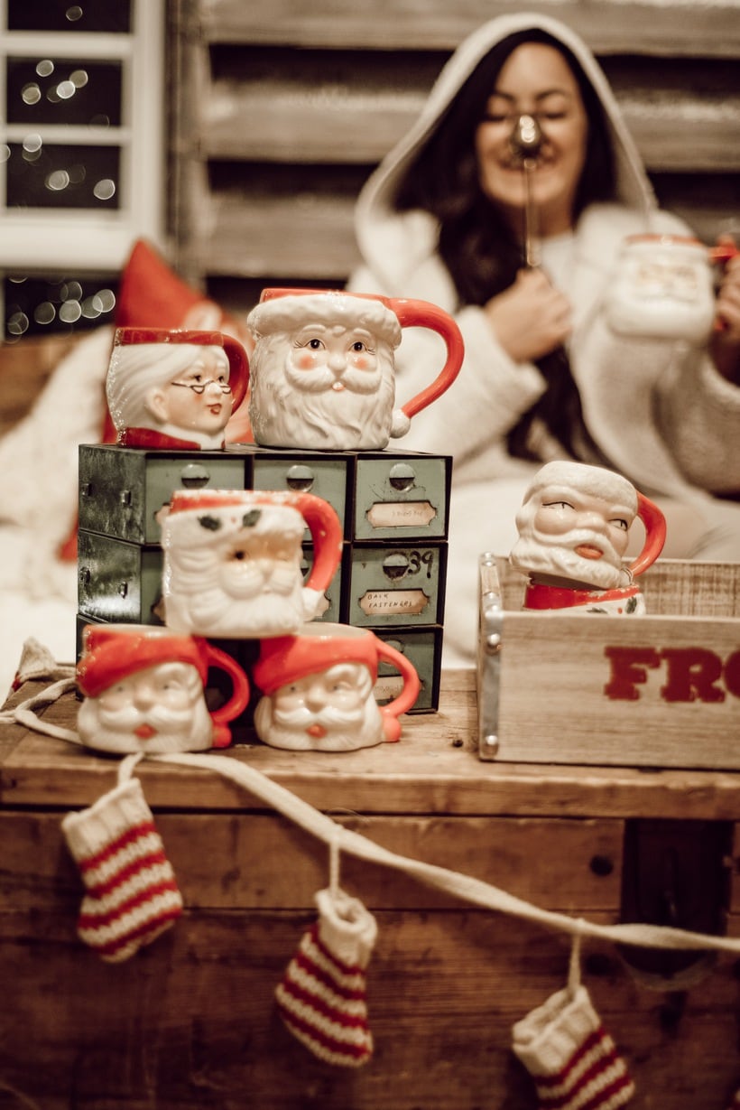 Honestly I just wanted to make this little space festive and happy so I brought in many of my santa mugs among some other festive things like that stocking garland from Michaels & that red mail box I picked up on one of my trips to Tractor Supply. Those red pillows from HomeGoods add the perfect pop of red as well. It’s nothing fancy, but it’s cozy & it’s for sure got all of the festive feels in here. When you are looking at these photos I hope you can hear what we were listening to while taking them… Lauren Daigles Christmas album. If you haven’t heard it, listen to it now!
