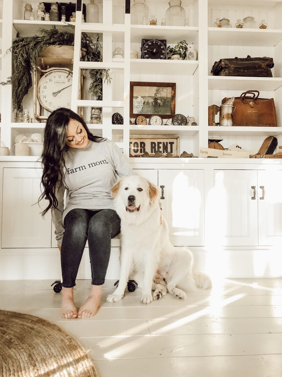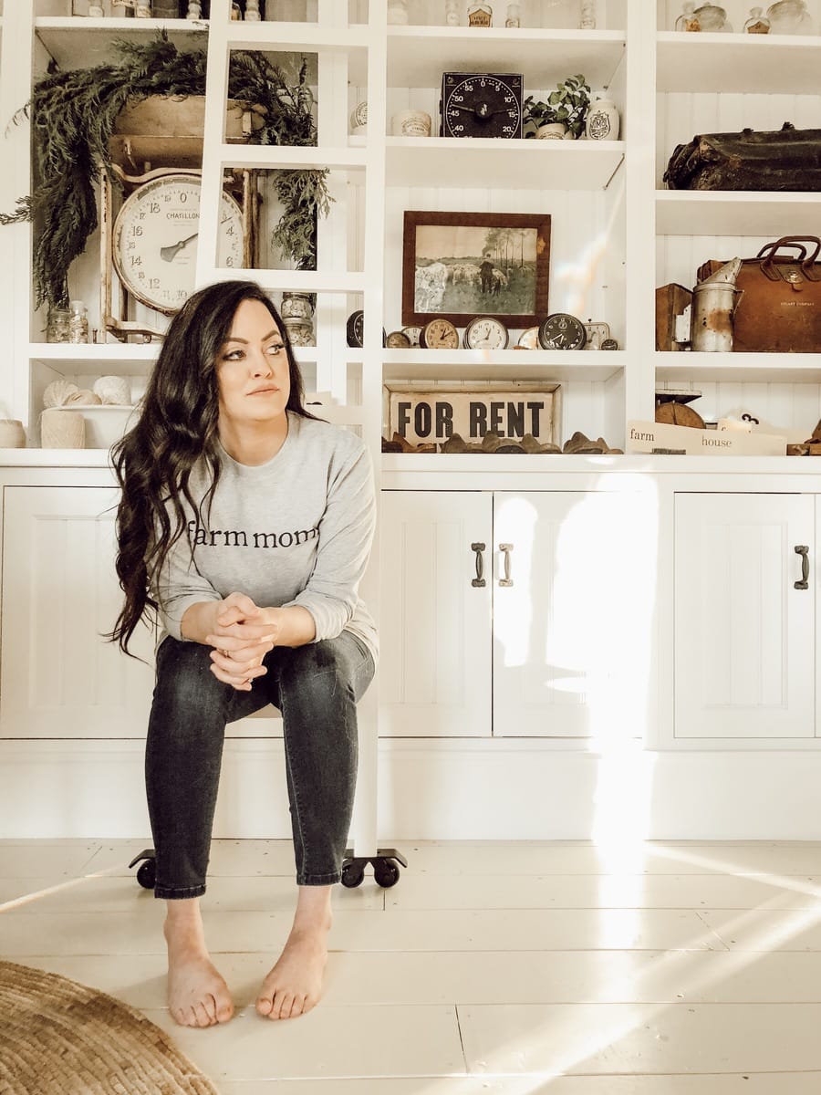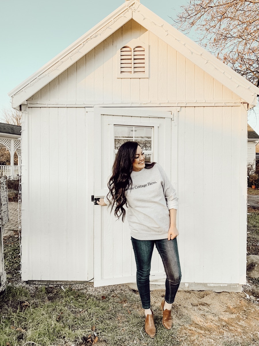 Hi guys!! I wanted to pop on today to announce that we had a big re-stock in the shop last night!! We launched some new shirts like our white cottage farm gray sweatshirt, a gray long sleeve farm mom t-shirt, and a gray herd mom sweatshirt. We also added extended sizes to the shop after a lot of requests for those. We are so thrilled to restock the shop just in time for Christmas gifts & also something even more exciting just in time for the holidays and holiday decor….