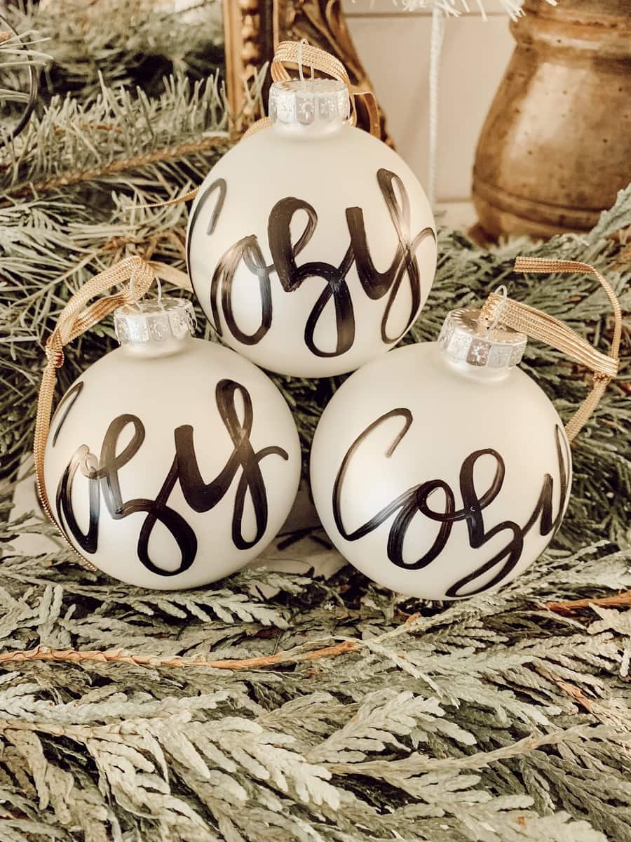 It’s custom cozy ornaments from Lettered Gem!! Brianna hand lettered a limited amount of gorgeous white ornaments in sets of three just for our shop to decorate for Christmas. Honestly I want to keep these ornaments out all winter! You guys know my love for cozy, my love for creatives, & my love for handmade so this collab means the world to me!! I’ve had the honor of meeting Brianna in person a few times even though we live in different states because she did our market for our shop this past summer & she also drove up this past fall to do a fun pop up shop in our store…. She is literally the sweetest person on the planet & also dang good at what she does. I hope you guys show her some love and support her small shop!