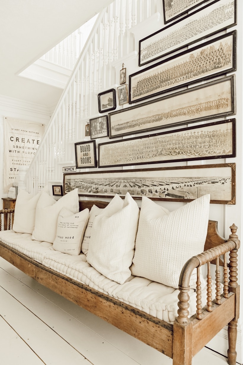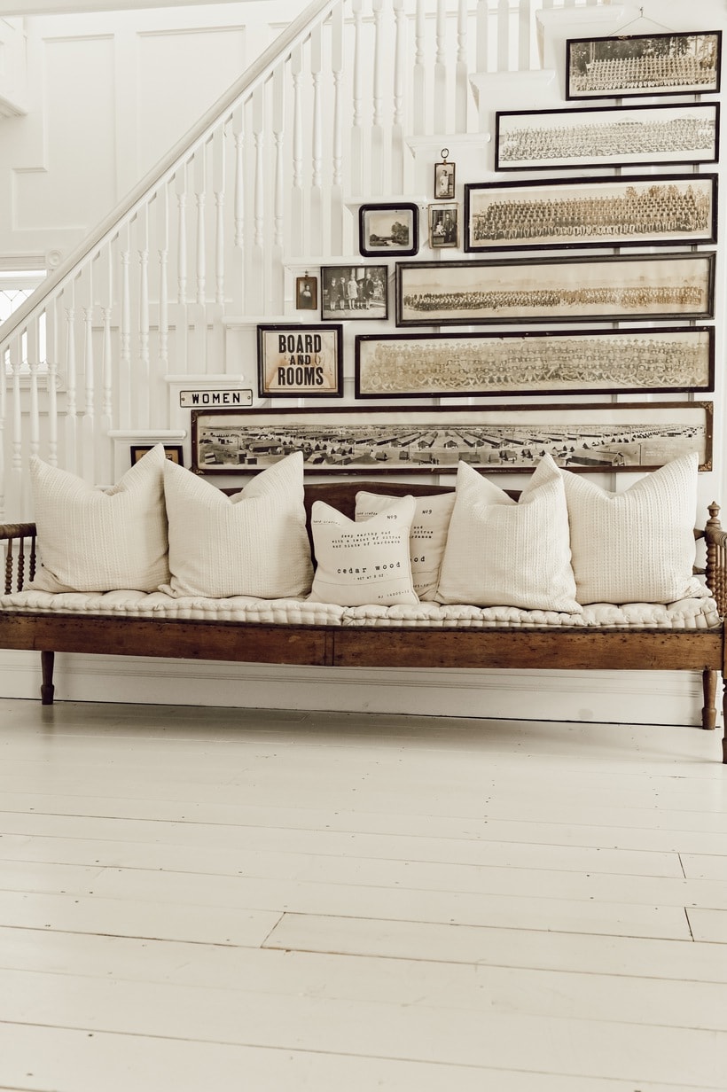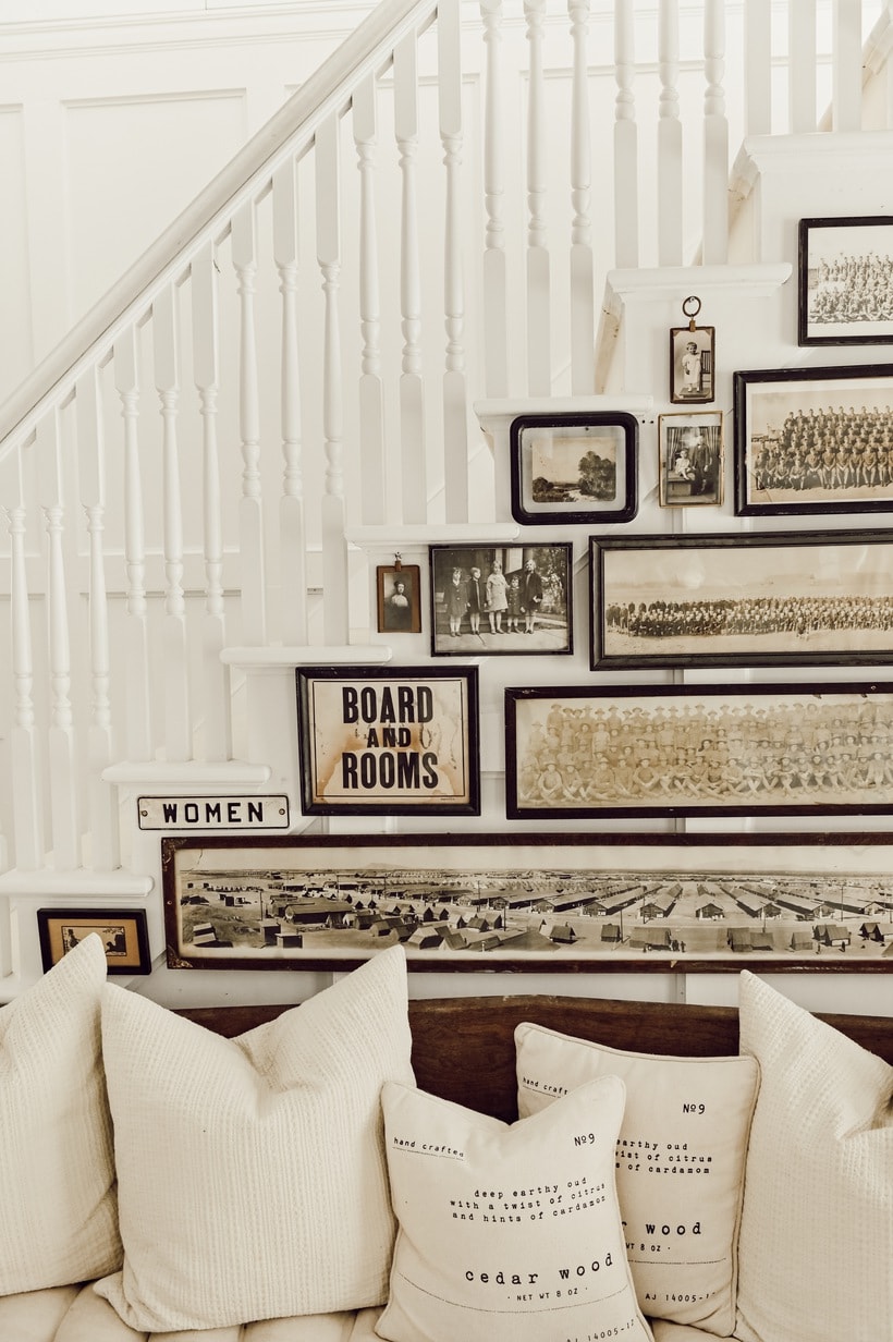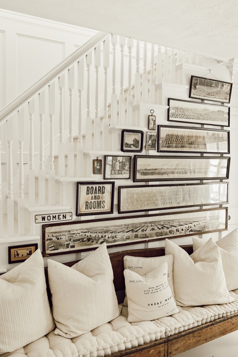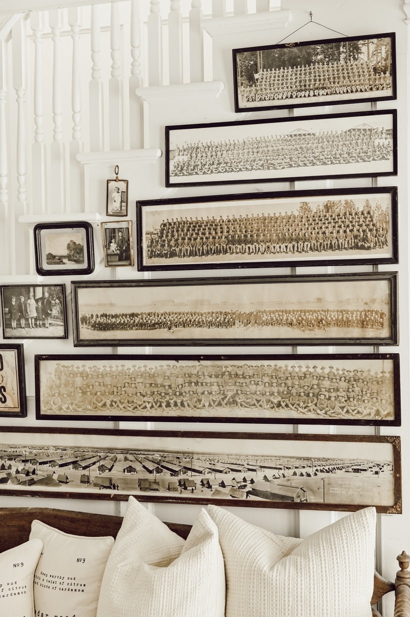 This is by far, my favorite arrangement on your stair wall. I have always been fascinated by large panoramic group photos. As an antique dealer, I have sold many in my time. I personally collect old sepia toned class photos from before 1930. Your creativity is always an inspiration.
