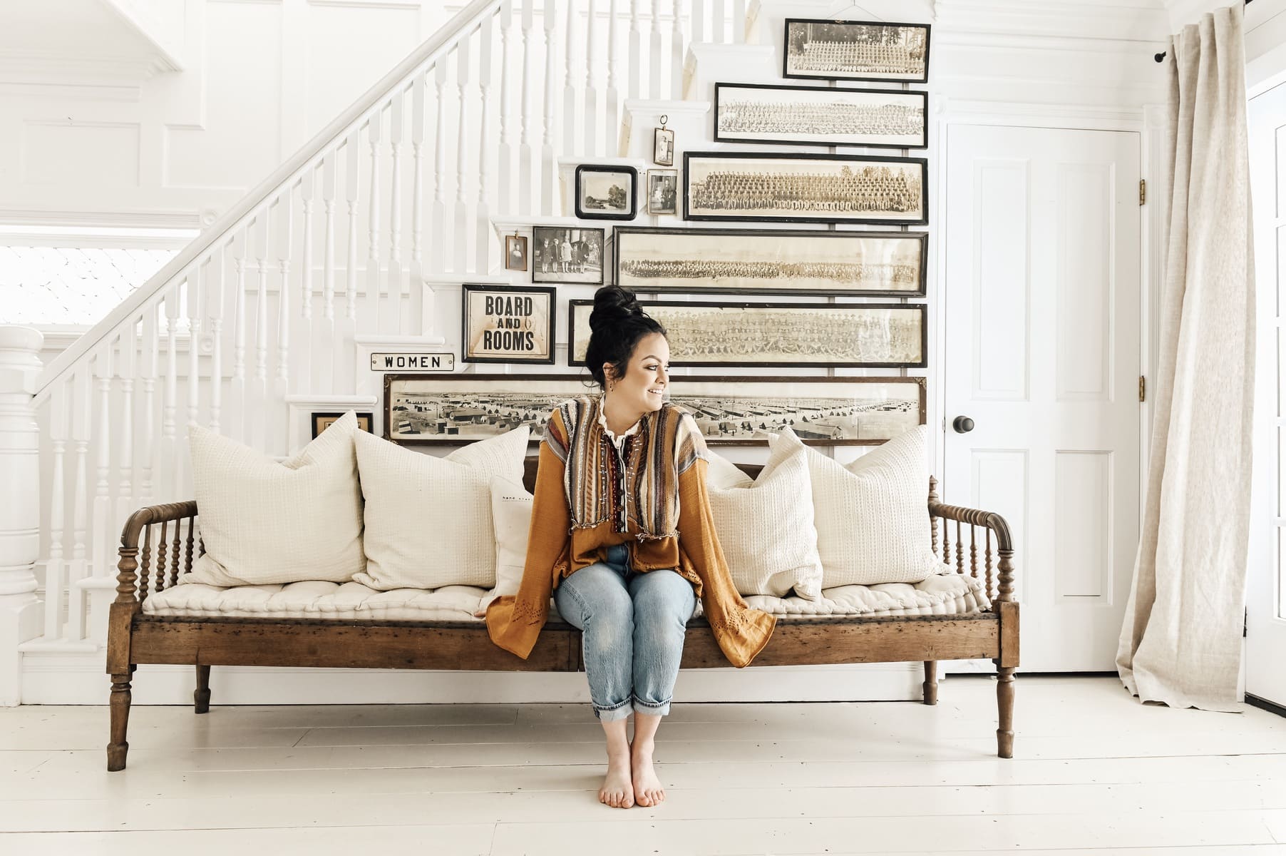 Beautiful! Can I ask, where you found or had made that lovely white “create something with purpose” fabric on the left hand side of the entry way? I love it!!