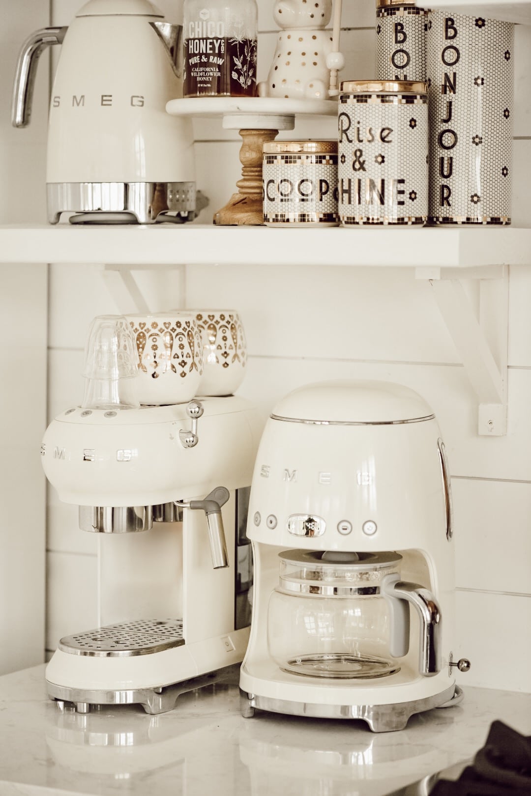 Great look ! I am drooling over the canisters! I love the “Rise & Shine” piece…is it from The Found Cottage ? They look fantastic in your mix but they would look great in just about any kitchen. Please let me know !!!