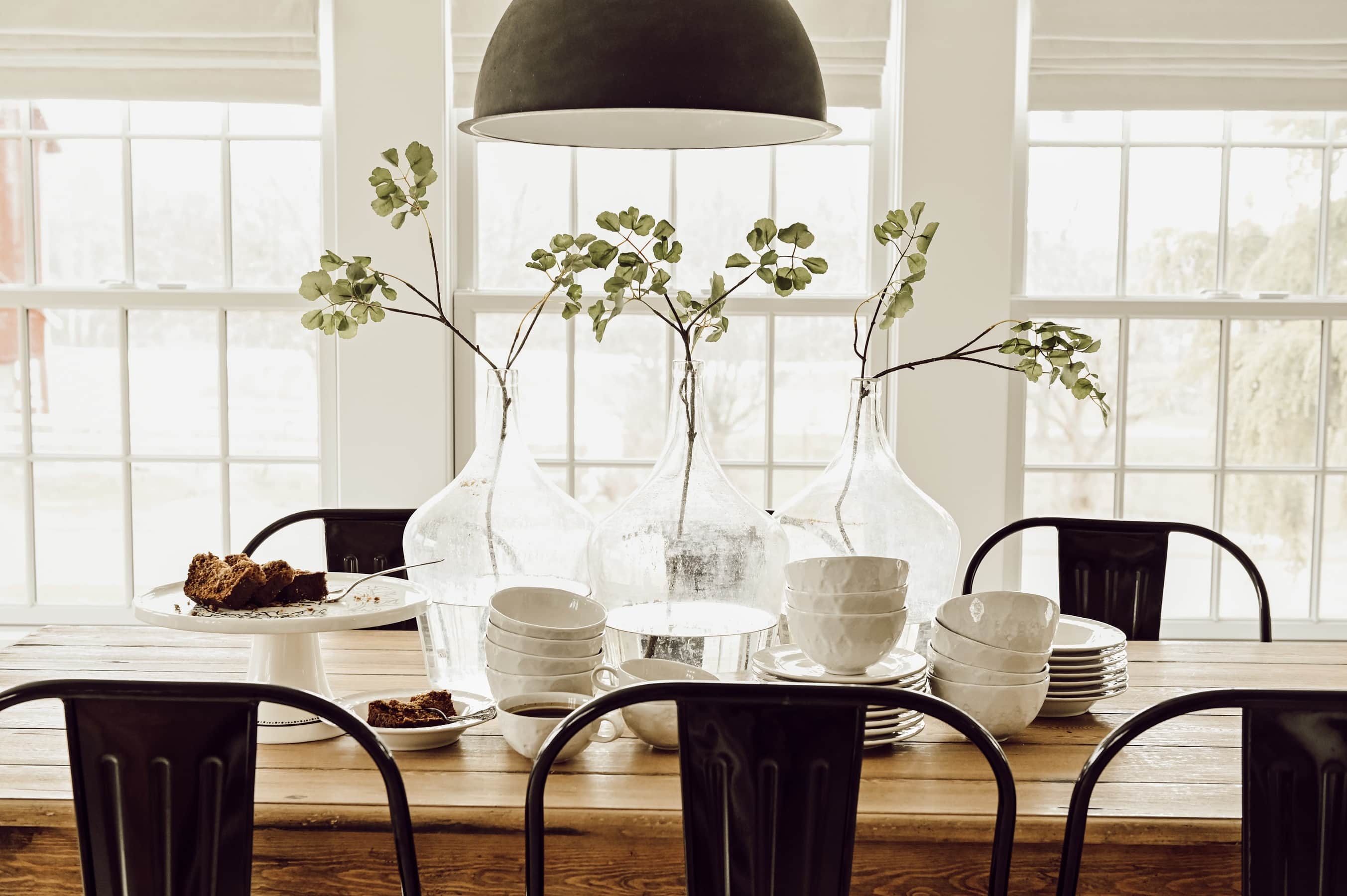 Love this idea of just switching out the branches in the bottles. My son gifted me with a very expensive NY bourbon las Christmas. I kept and washed out the short, squat bottle and will fill it with faux olive branches from Hobby Lobby for spring. The muted green leaves add just the right amount of green and all is grounded by the small black olives. Summer will fill this bottle with some fresh Artemisia from the herb garden, fall will give it some foliage branches, winter some evergreens. Lots of fun in creating this vignette.