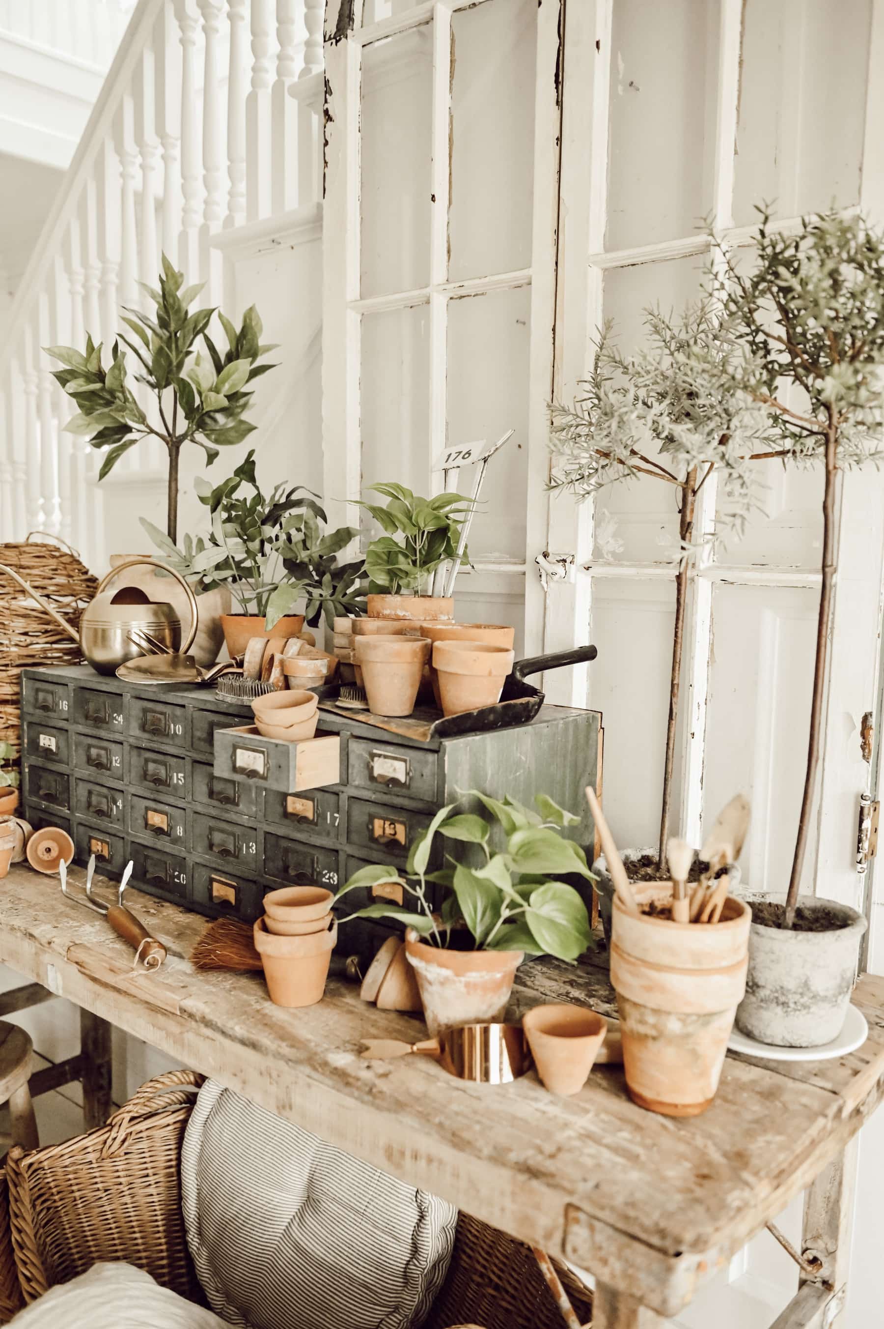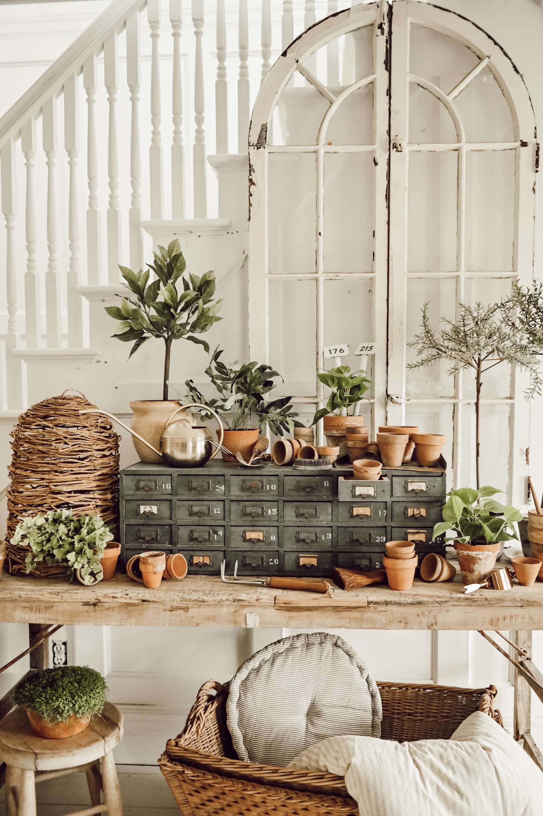 No, I haven’t blogged this space. Well, I kind of did, but I gave it a new look today & had to show you what it looks like now because it’s even more of my greenhouse decor passion that I always share here on the blog. I think before I share what it looks like now, I need to share what it looked like before the changes this weekend…