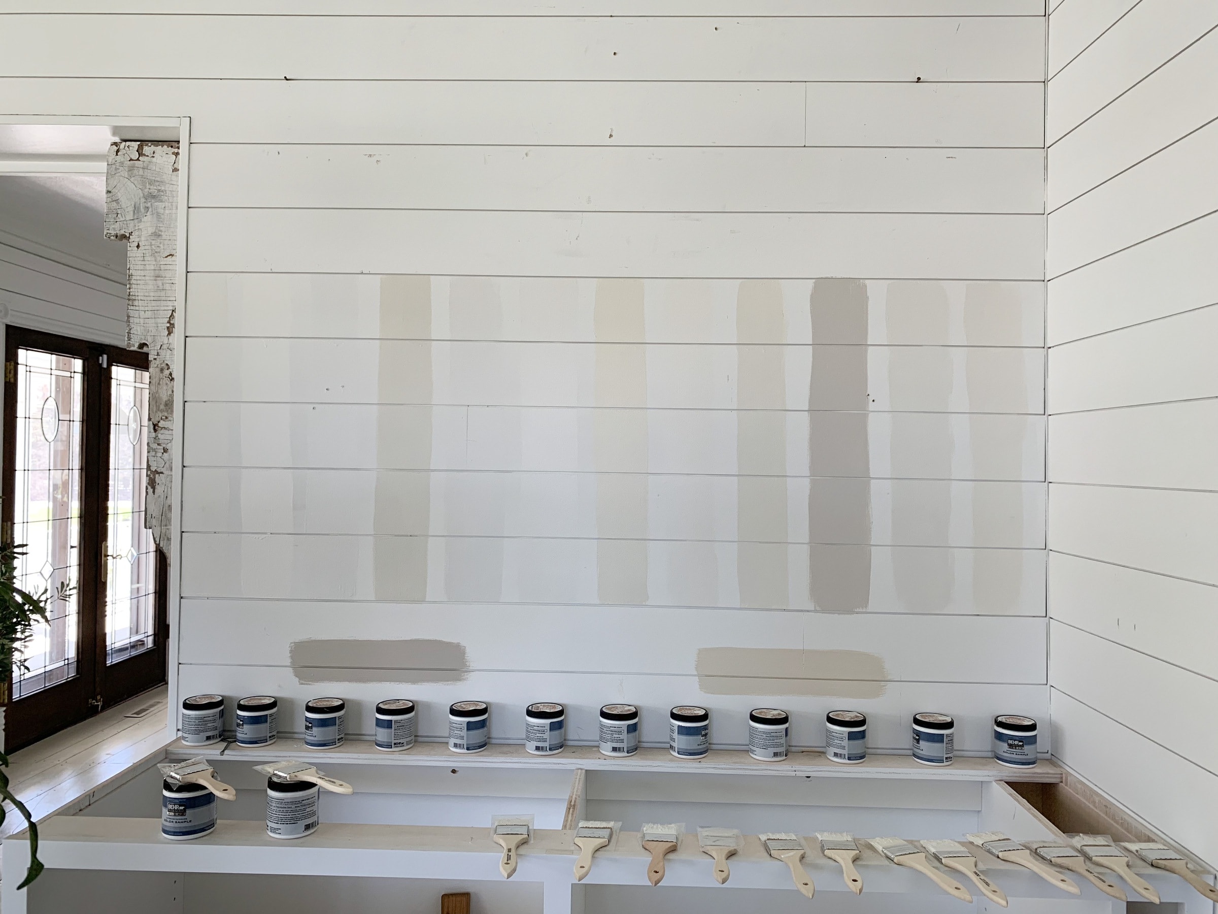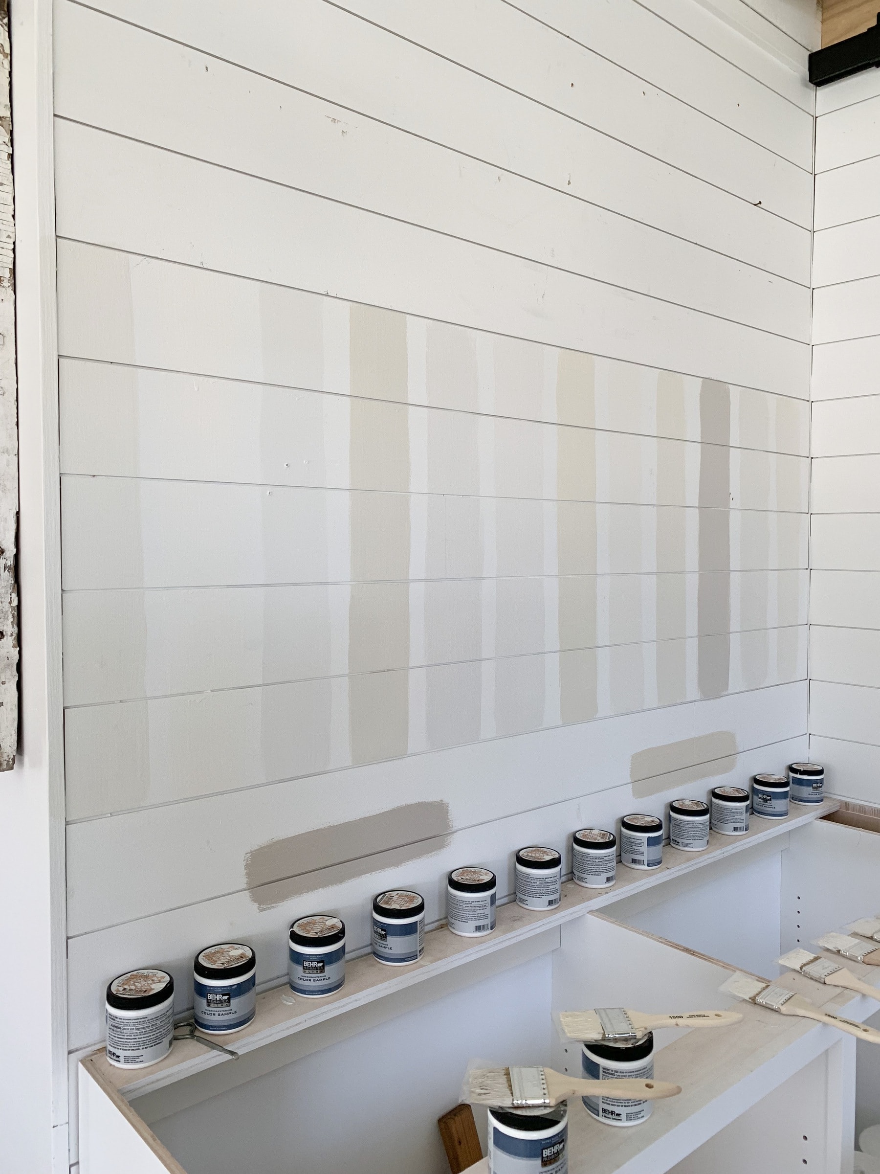 My favorite white, which I used on my shiplap is Behr’s Ultra Pure White. It’s super bright, clean, and has no undertones. I don’t understand why people love Simply White so much. It looks yellowish to me.