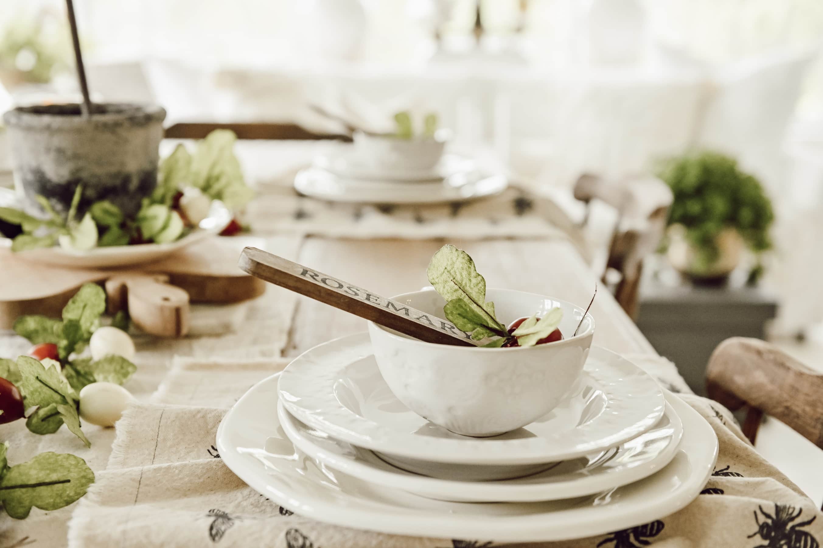 This is a wonderfully inviting table setting! Love to recreate! The only thing I cannot find is the wooden plant markers?