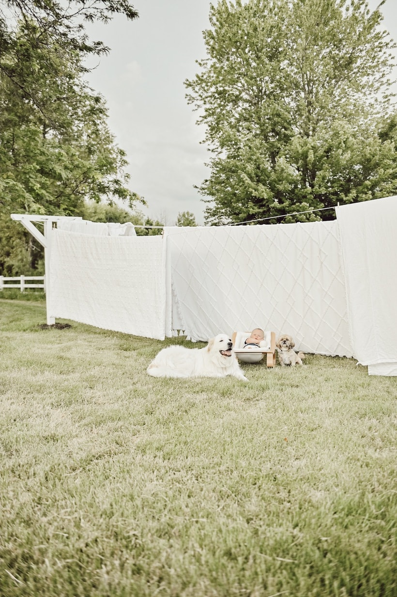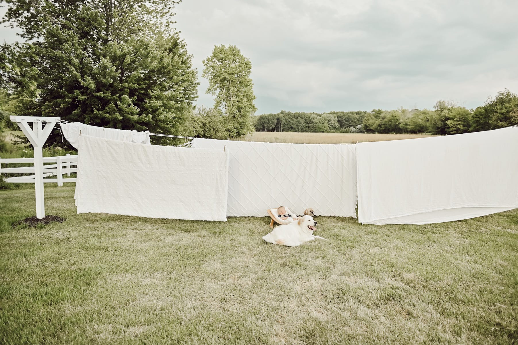The white linens, adorable baby, and your fantastic dog