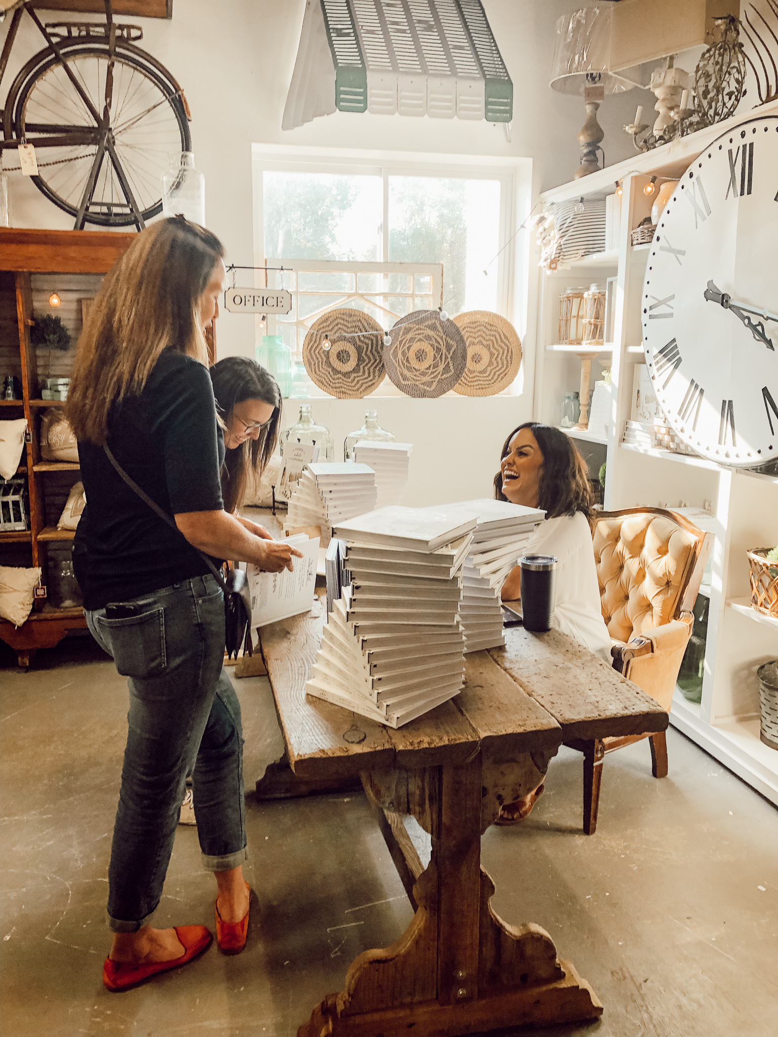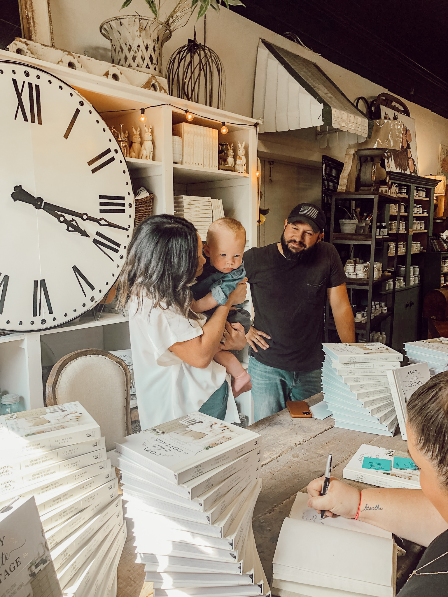 It was so much fun to come to your book signing. You were the most gracious and kind hostess and spent time with each and everyone of us. I was excited you remember little ole me and my blog!!! I have “I have found the one my soul loves” that was hanging over your bed now over mine. I love that it was a feature in the book makes it even more special to now own. Your little guy is so handsome and cute. What a sweet personality he already has too. He was enjoying saying hi to all us chicks waiting in line to have you sign our books. What a beautiful day too. Congrats on your book. I love it.