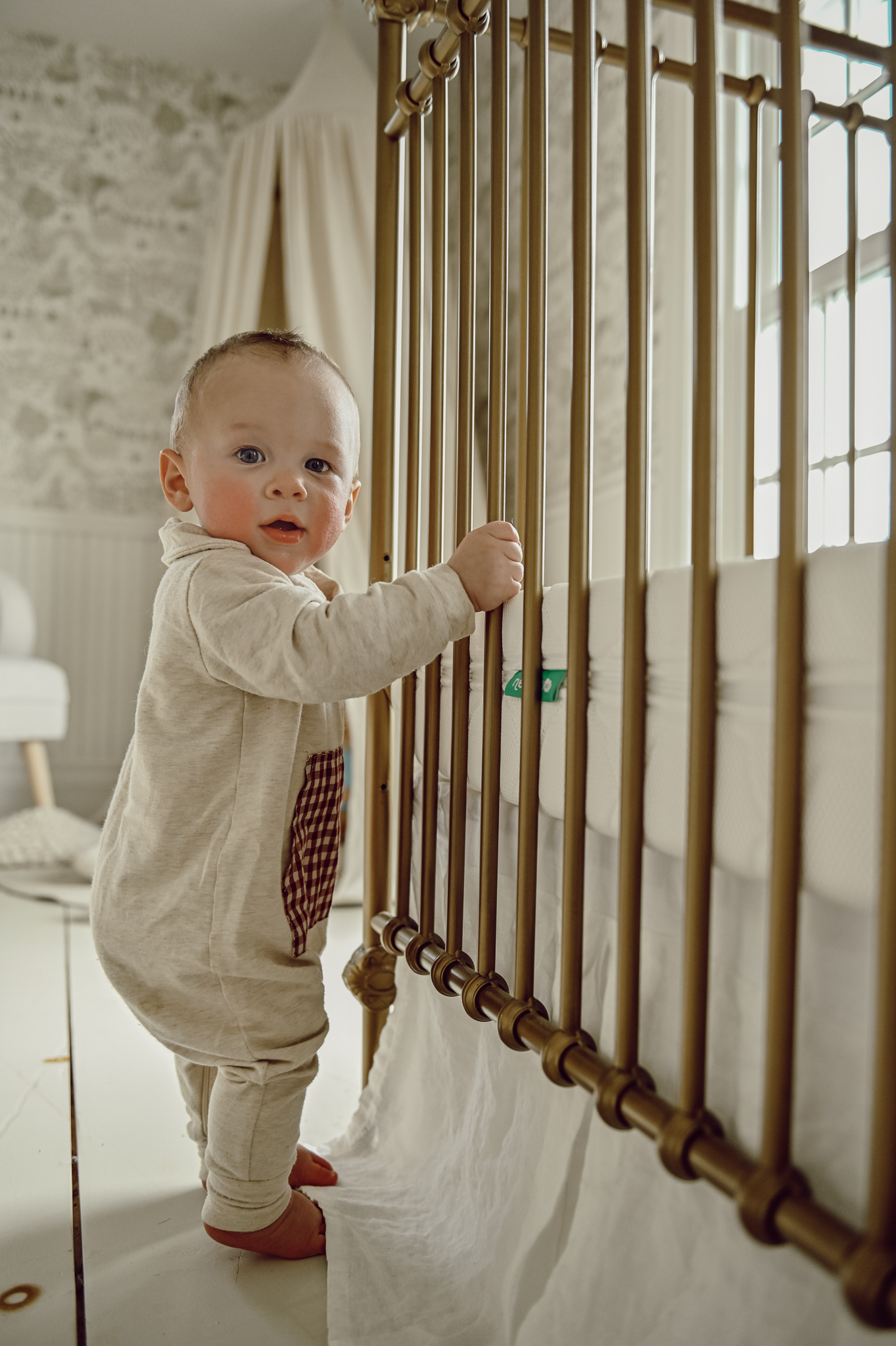 Today on my Instagram I shared a little bit about me cleaning Cope’s nursery & steaming all the things. I took a huge break from working on this space because when Cope was born he actually slept in our room until he was 6 months. Now that he is in his own room I’ve been back in the nursery working on it a little more. I am so happy that it worked out this way, because we didn’t know what we didn’t know, if that makes sense. He just started crawling with a purpose and pulling himself up. This will help us create the room to work with him as he continues to get more mobile and into stuff. Today on instagram I did a giveaway [HERE], and it was in Copes nursery, which made me remember… I haven’t done a nursery post in forever. I want to work on styling this space, over the next few weeks & “complete” it, to share on the blog soon. But for now, since I was up there taking photos for the giveaway, I thought I would share a sneak peak for you guys.