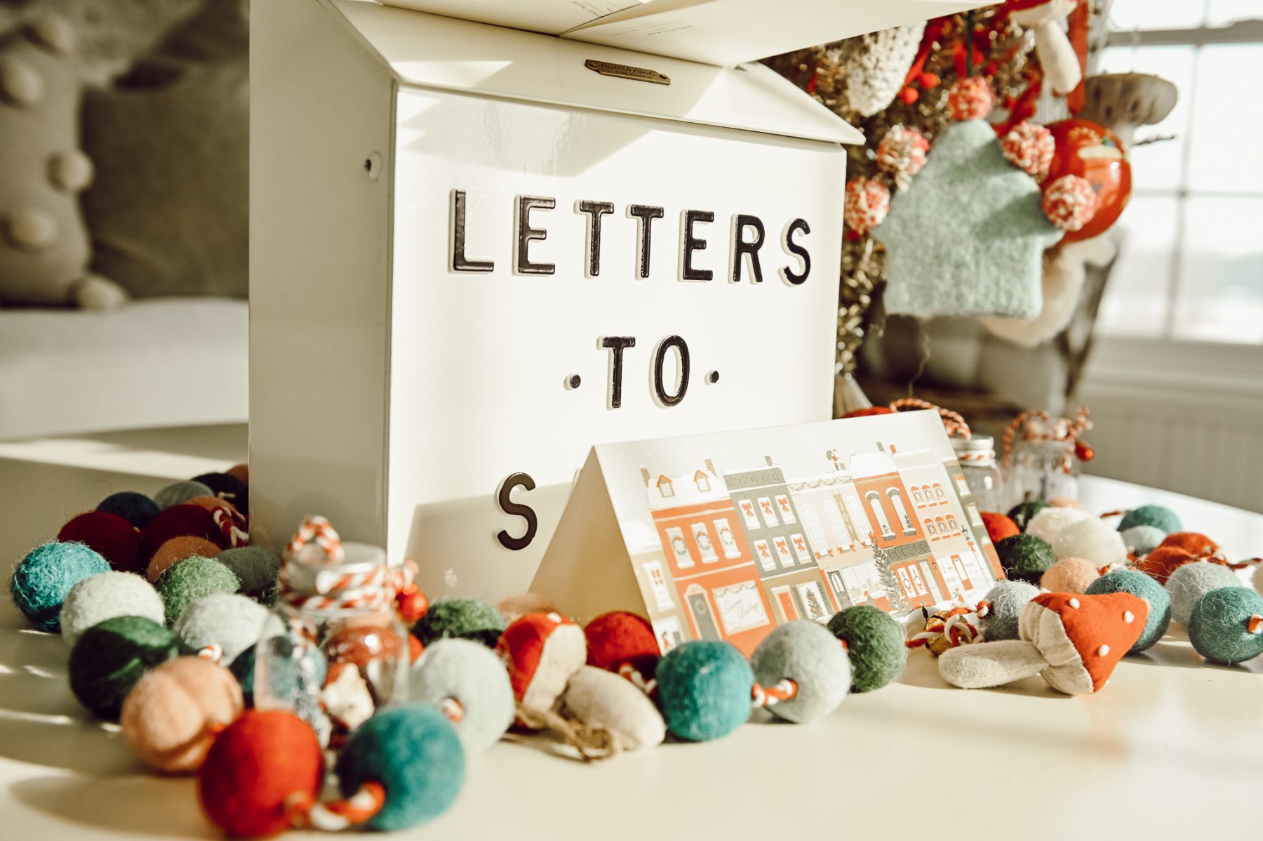 I add some extra elements to the coffee table like his letter box for letters to Santa. I hope we can incorporate this into his room each year somehow, especially when he can write letters himself. .