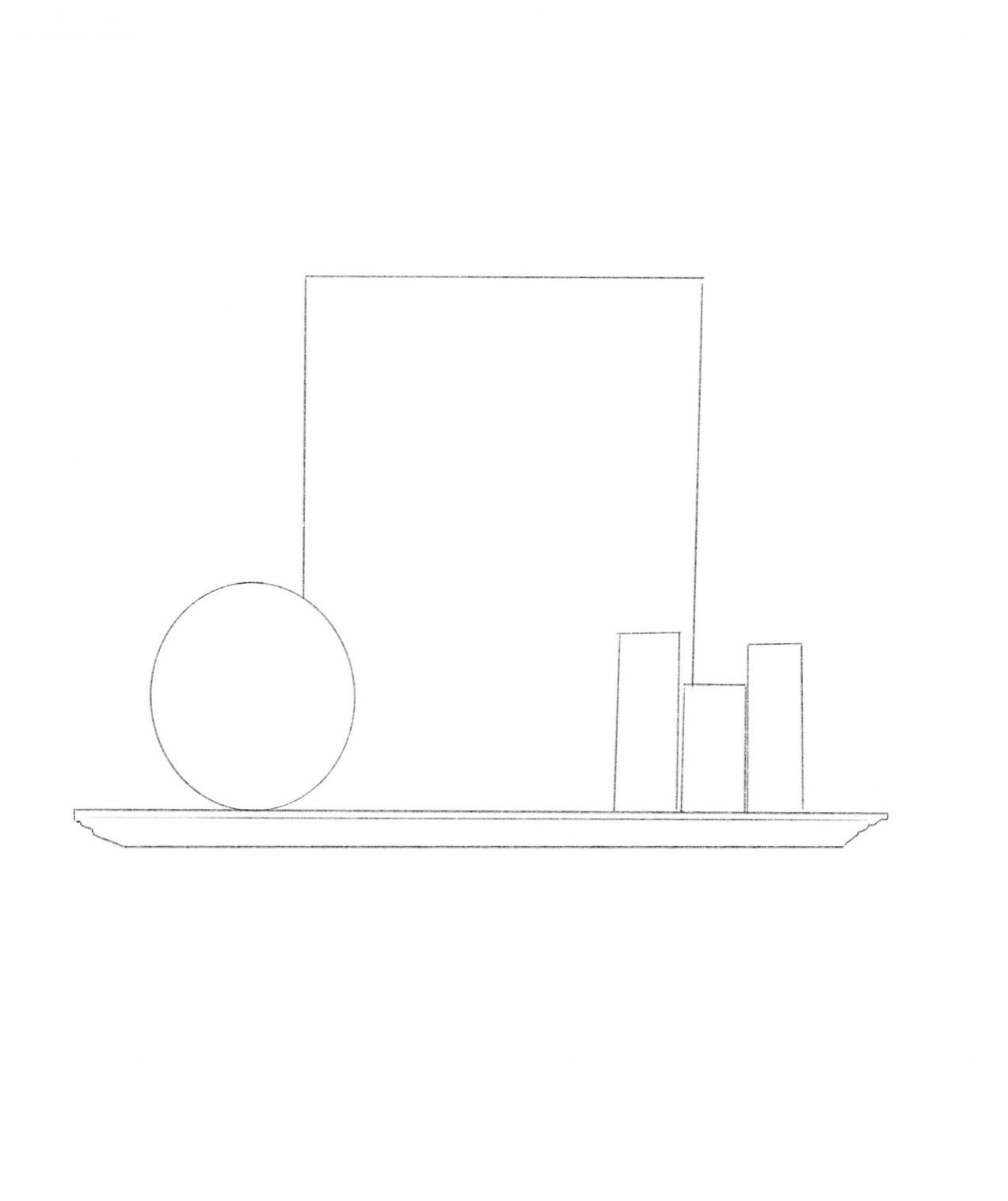 With some of these items being antiques, you probably don’t have the same thing. Here is a little blueprint for placement and proportions to follow. The backdrop can be made up of a mirror or large piece of art. To the left and right can be made up of plants, architectural pieces, or unique finds. Here is a simple guideline map for your mantel to achieve the same look:
