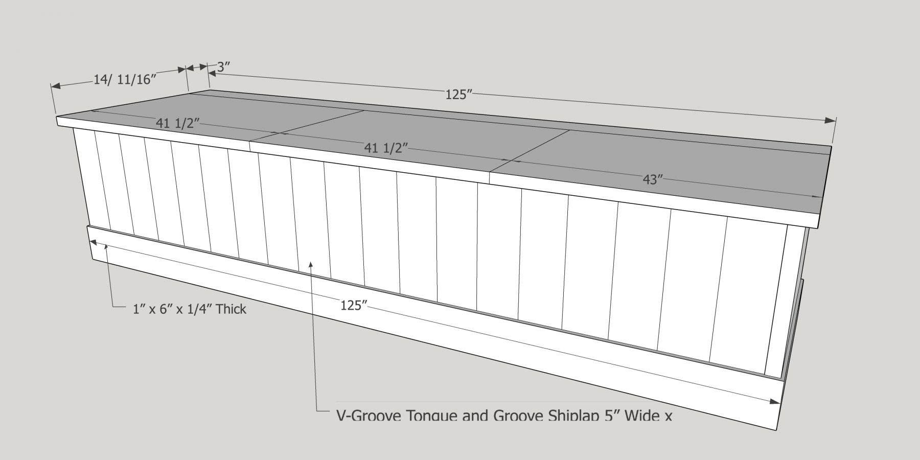Step 6. Attach the back 3″ board to the top of the ledger board. Using a small gap, roughly 1/8″ gap the back of the boards evenly down the bench and install the hinges. We choose to have three lift-up lids and installed separators, one for each member of the family.