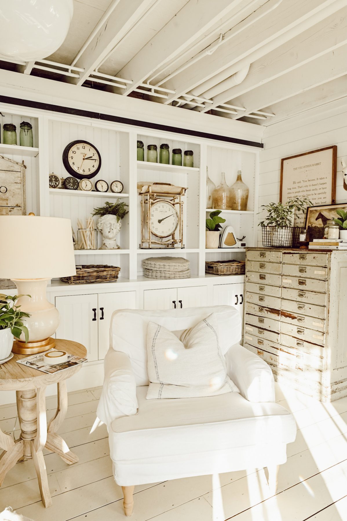 I am going to give a renovation to my farmhouse style sunroom and looking for options. I love the way you arranged all the things. I like the white color scheme. I am looking for a suggestion to place a rocking chair and need your opinion. Should I buy a rocking chair or simple chairs?