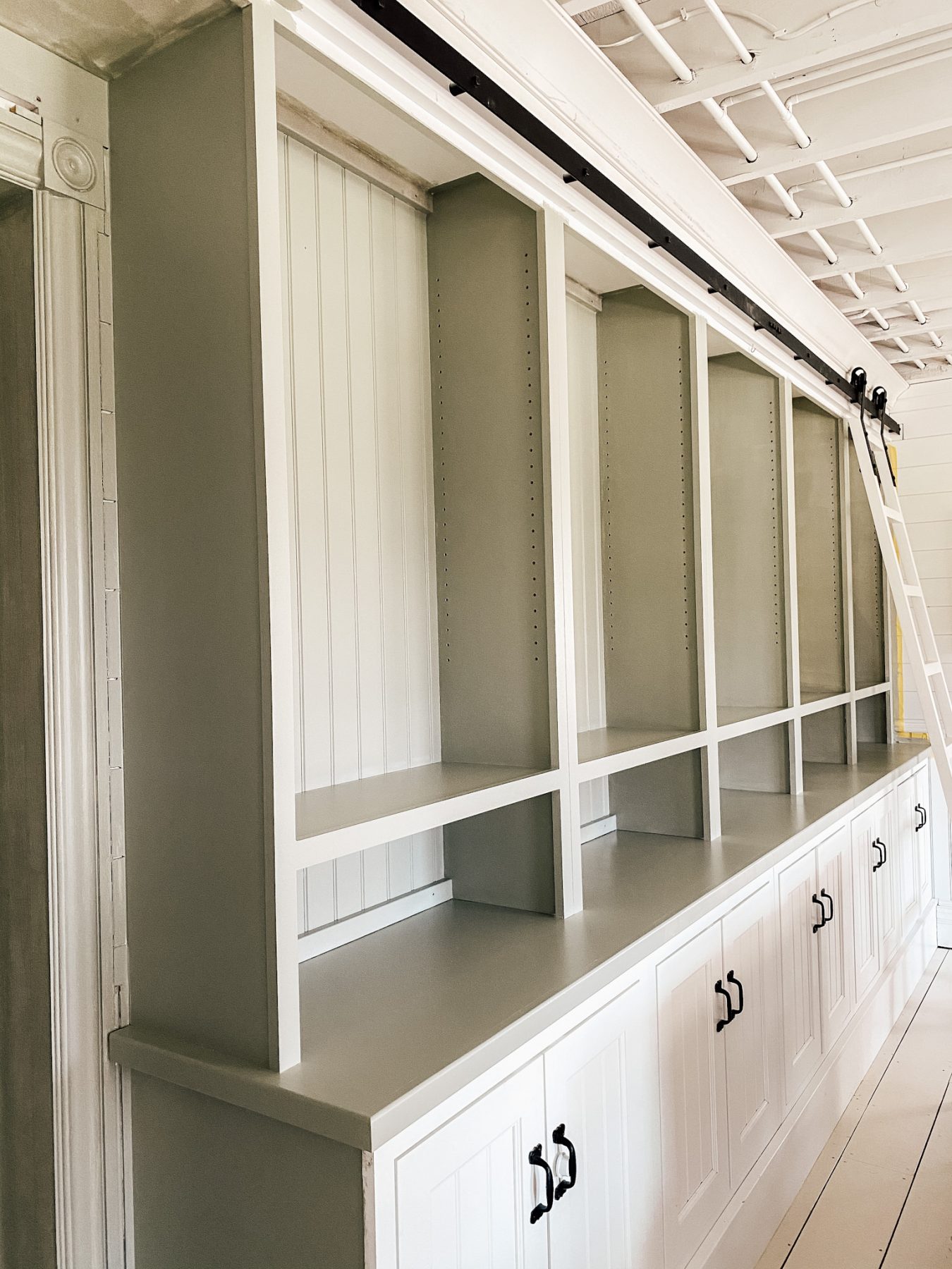 The library shelves look fantastic, Great color choice. I can’t to see the finished project/room! ❤ ❤