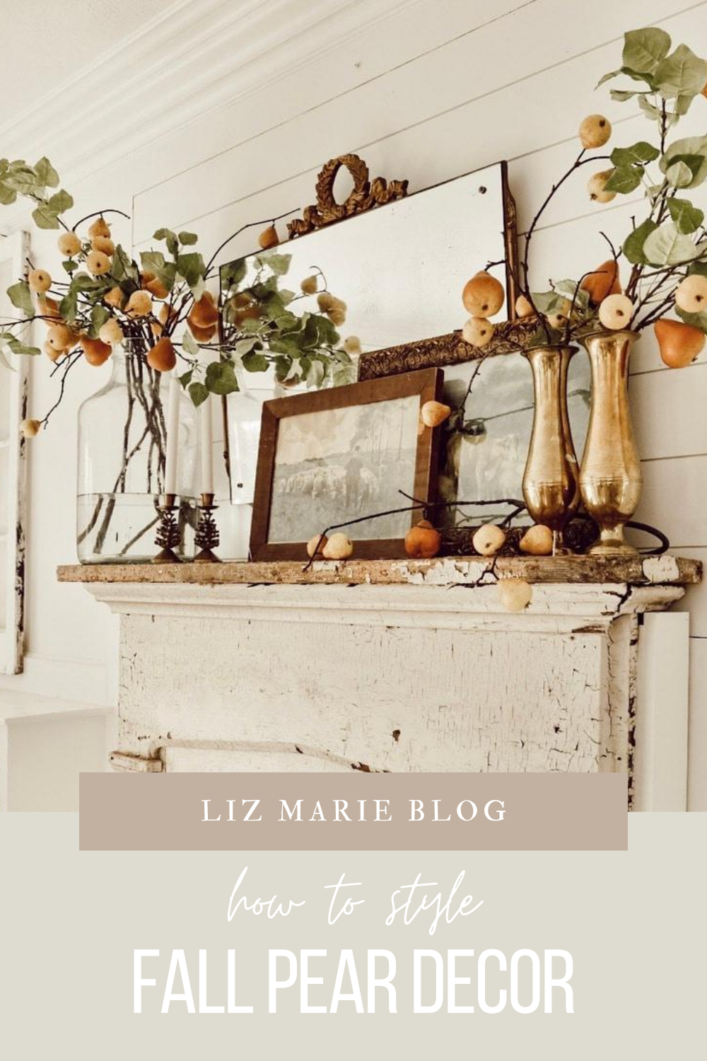 I love the look of the pears lined up across the mantel. So this look can be achieved with fresh or artificial pears!