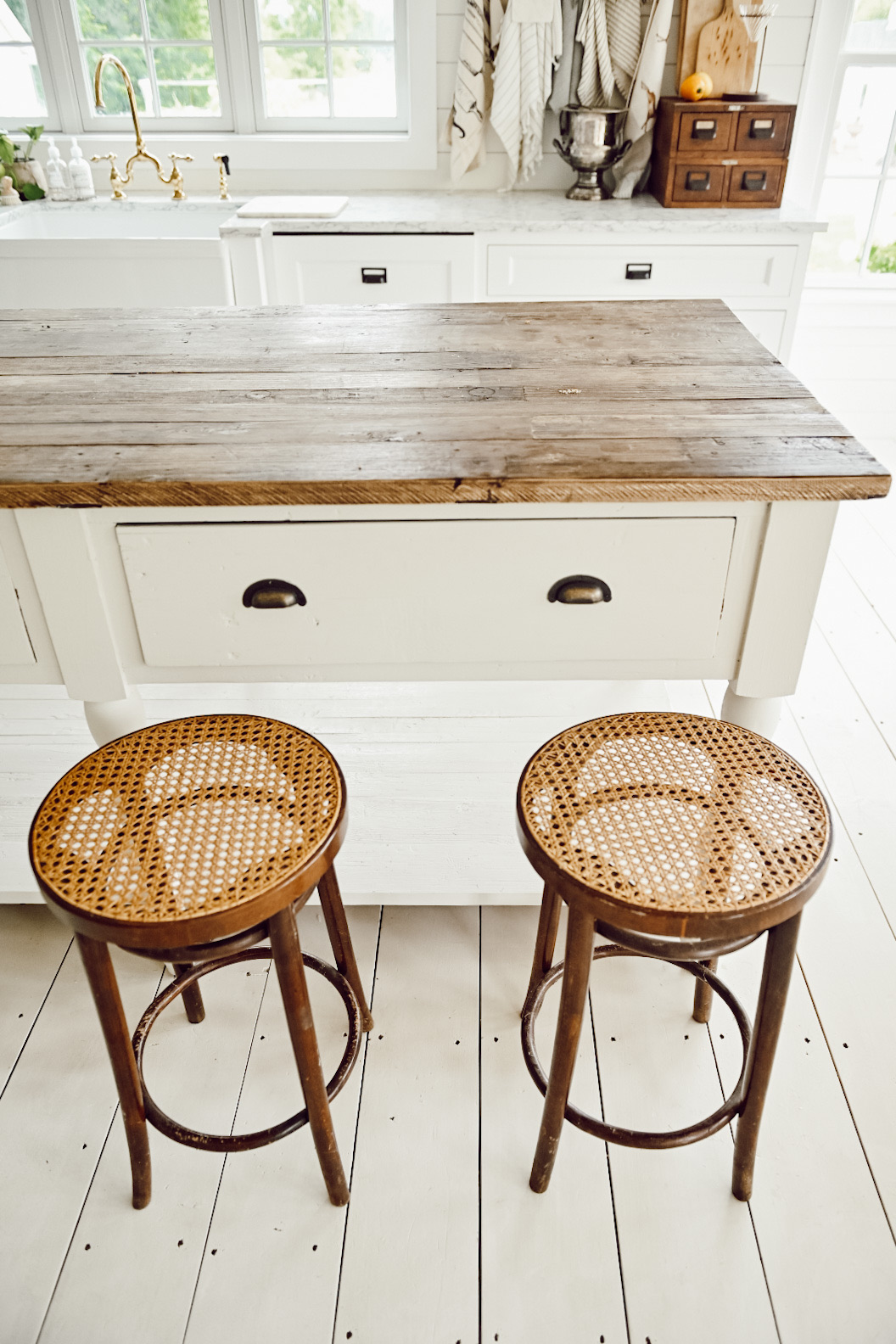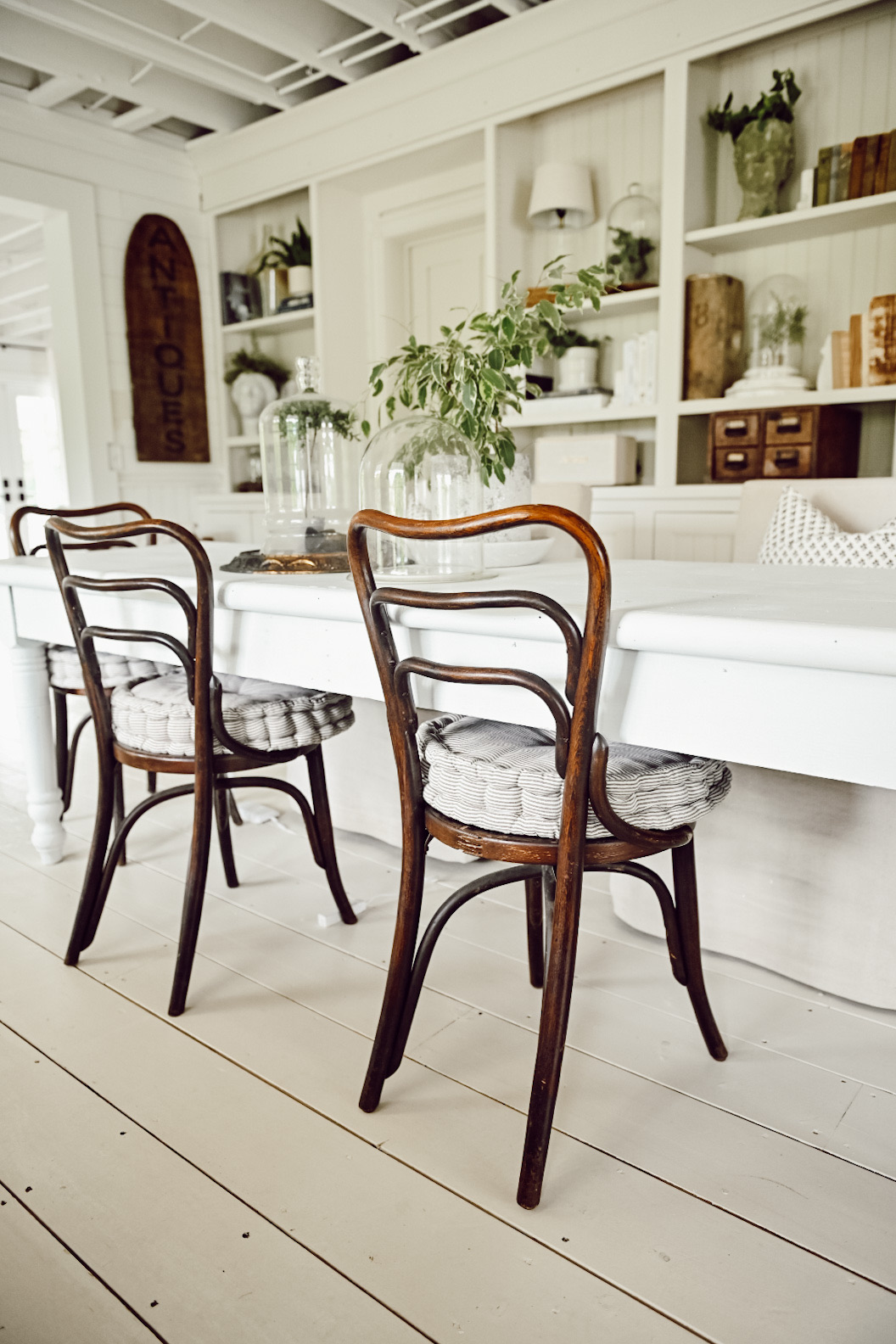 I styled the bentwood chairs in the library & I loved the contrast of the wood against all of the white in the space. As far as all of the other items, I quickly just styled them in some temporary places to show you how I would use them.. who knows though, some of them may stay there for a while! I see a pattern in what I picked up… lots of dark, cozy, wood tones! I think my brain was gearing up for fall even though it was the hottest day of the year!