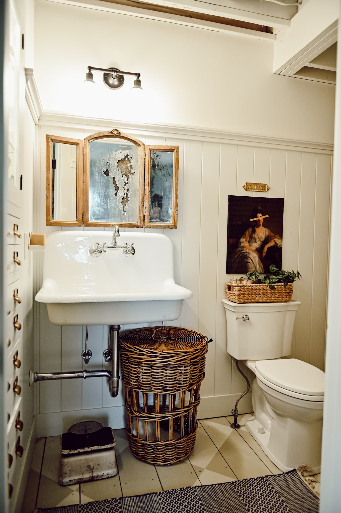 This large laundry basket adds the perfect cozy touch to our bathroom. You can use it as a laundry basket, for extra storage, or as a trash can depending on what you need in your bathroom! We hung this toilettes sign that I got from Michaels a long time ago, but we didn’t have screws that matched the gold sign. A quick fix for that is to add gold rub & buff to the screws and just like that they match! I also added this rug into the bathroom, I thought it was a great way to bring a pop of a pattern and cozy vibe into the space as we move into the colder months.