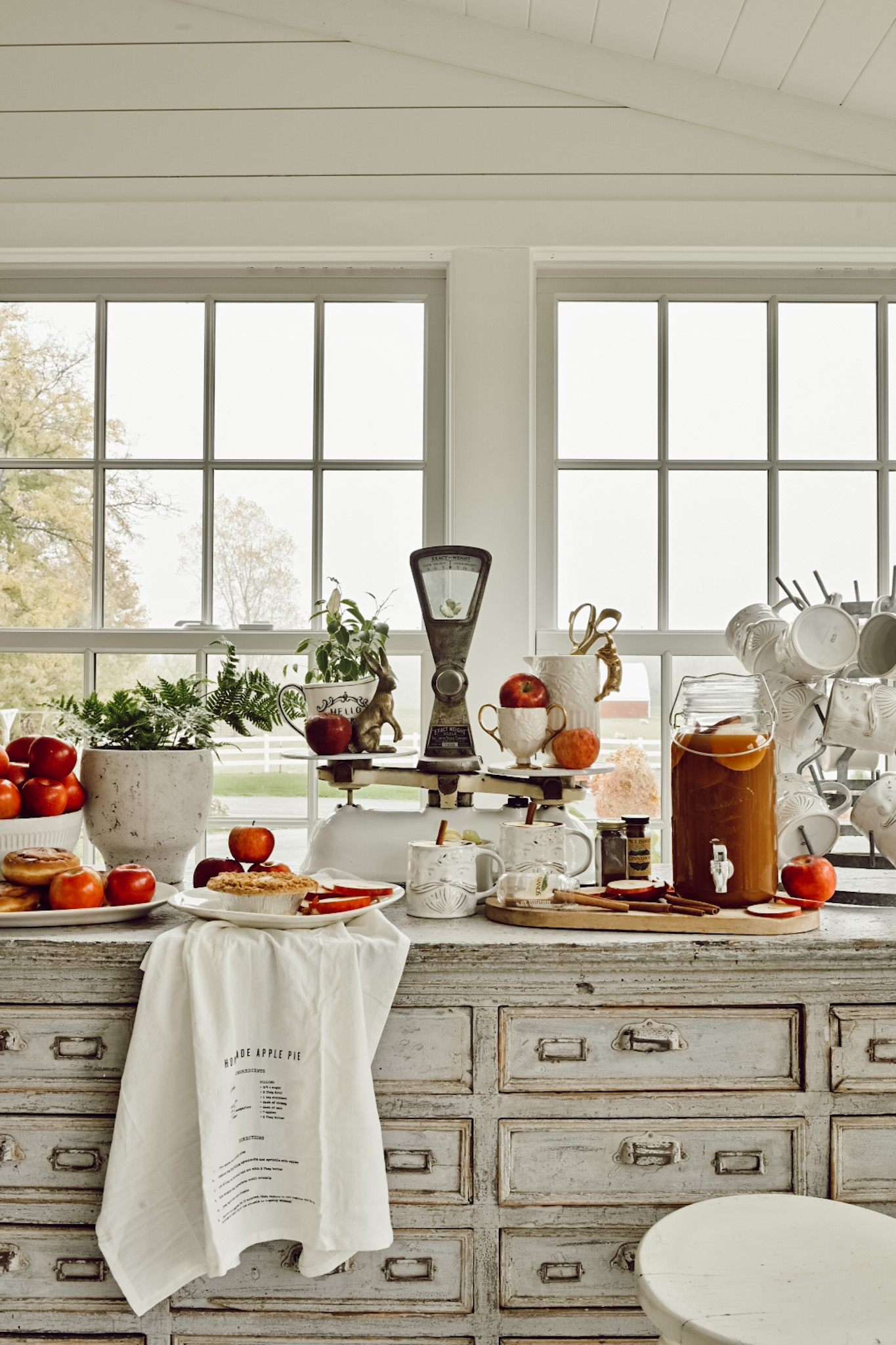 Today I wanted to share this super basic go-to for me whenever we have people over or want to do something special for our family … creating a super simple & pretty apple cider bar! I’m so excited to share this apple cider bar with you guys because here in Michigan apples are huge in the fall. We have 15 million apple trees here in Michigan, 775+ family-owned apple orchards in Michigan, & so many apple orchards close by our farm. I feel coziest when I have a drink on me, I always have some kind of drink whether it’s coffee, cherry coke, water, tea, or apple cider! Let’s get cozy…